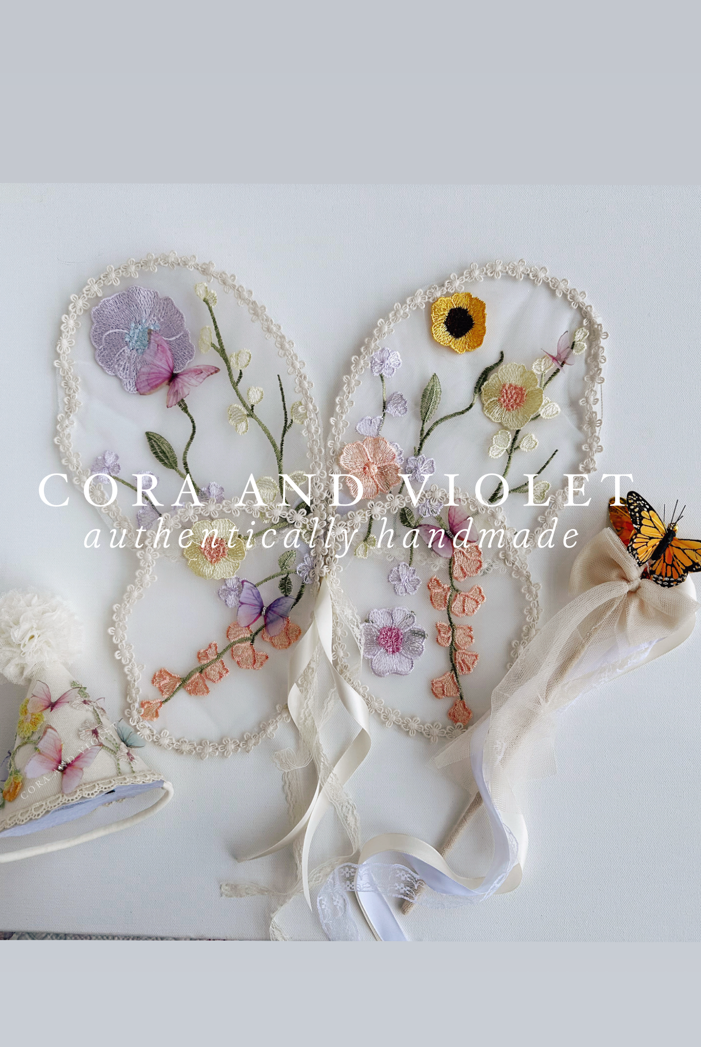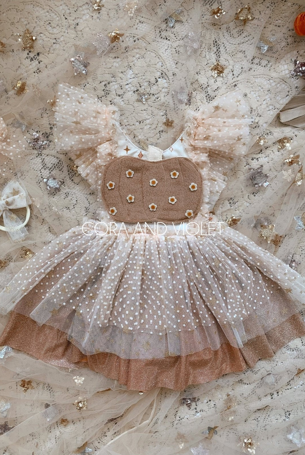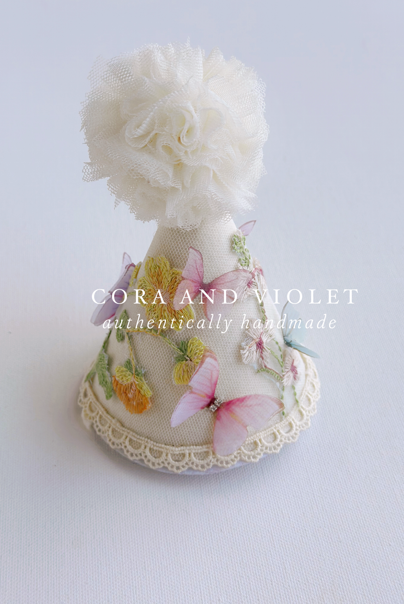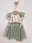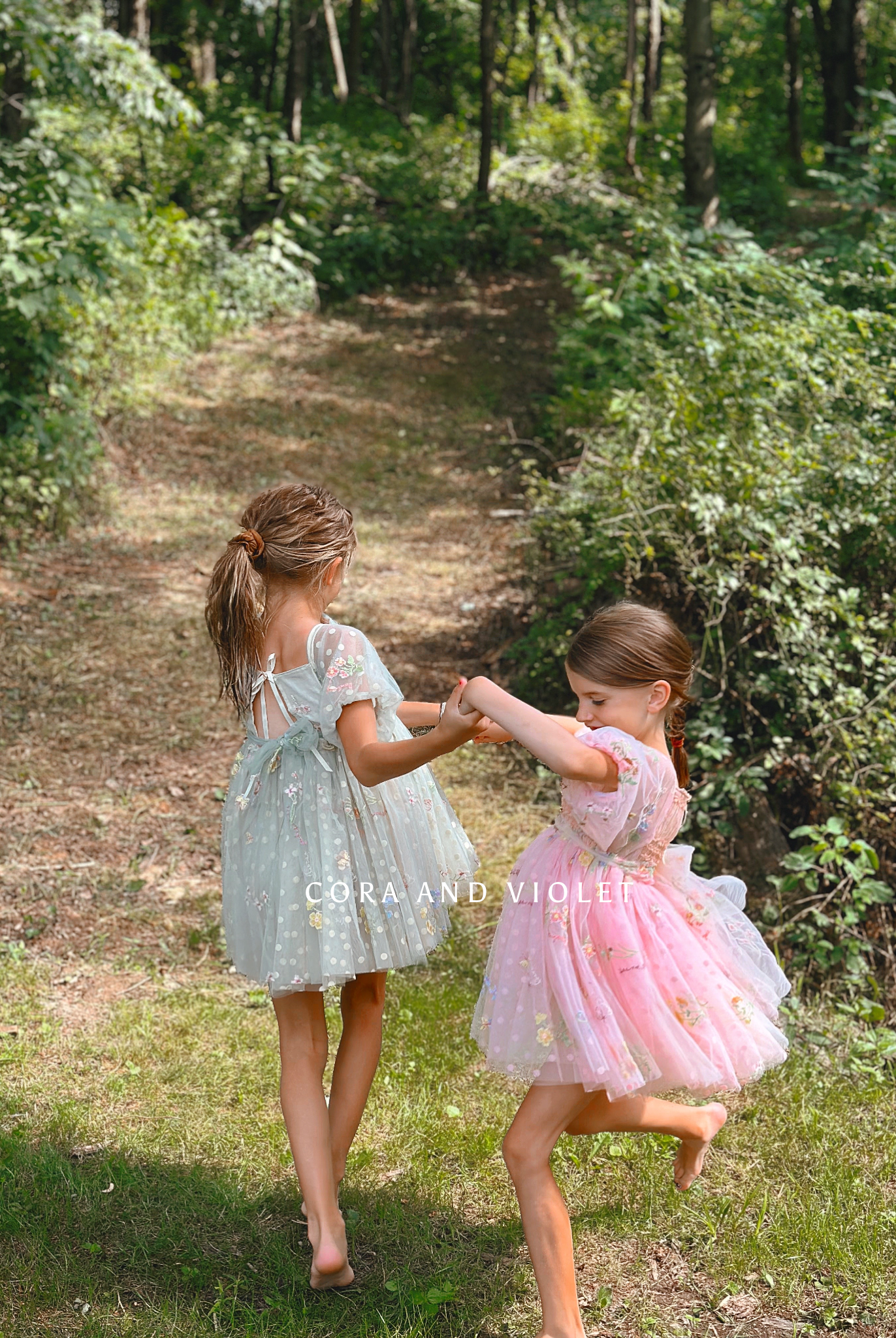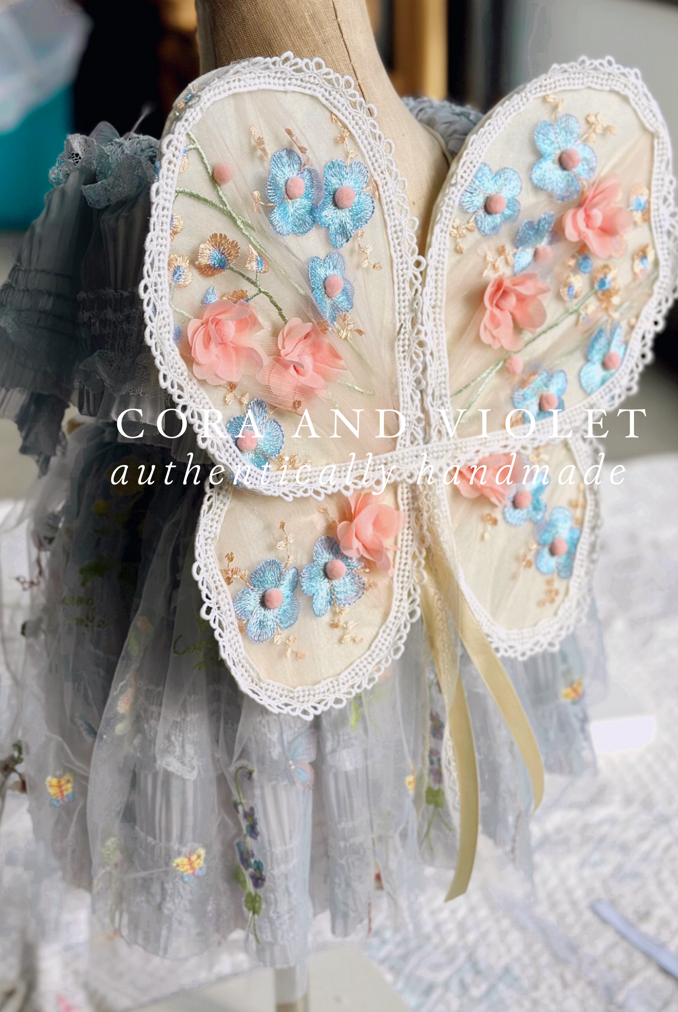 Embroidered mushrooms, sequins & 3D lace butterflies. The perfect dress for your fairies magical garden birthday!