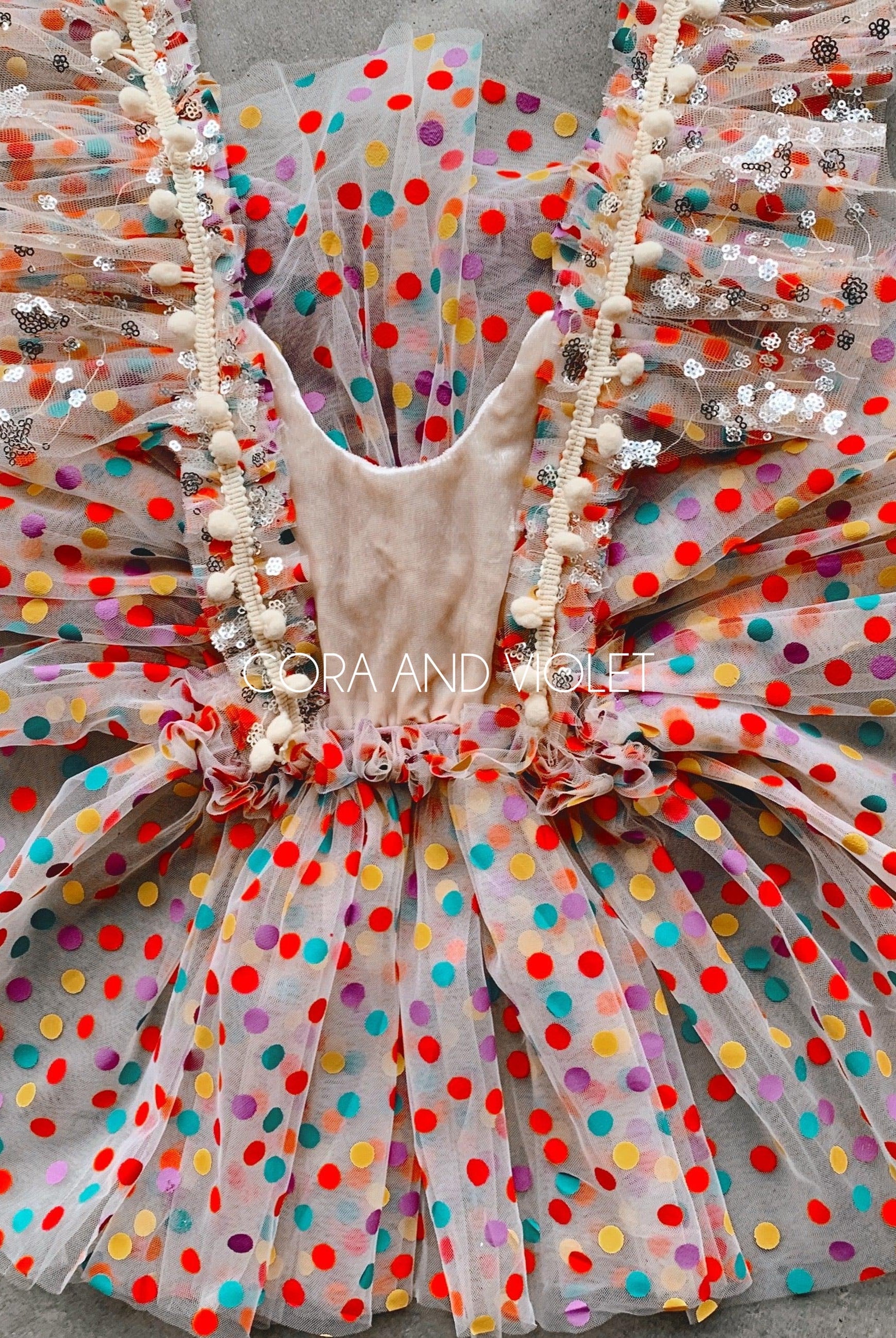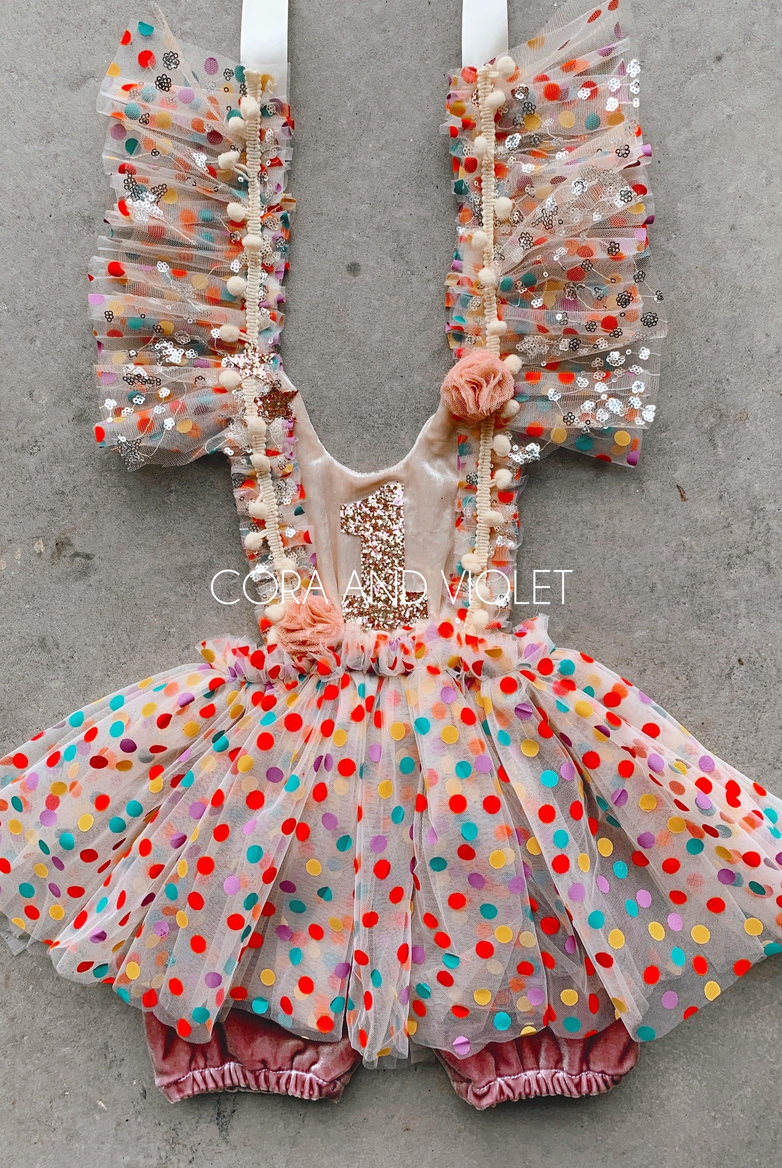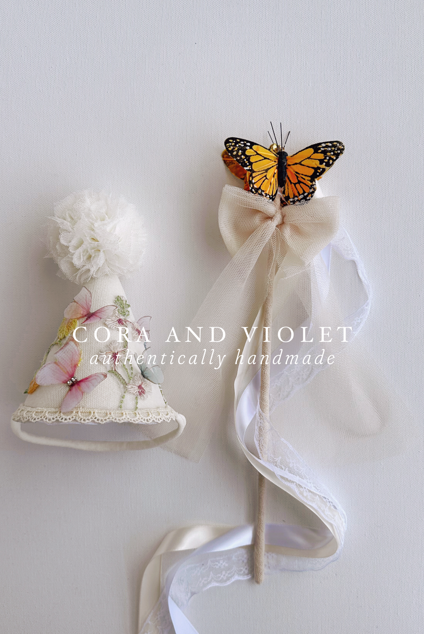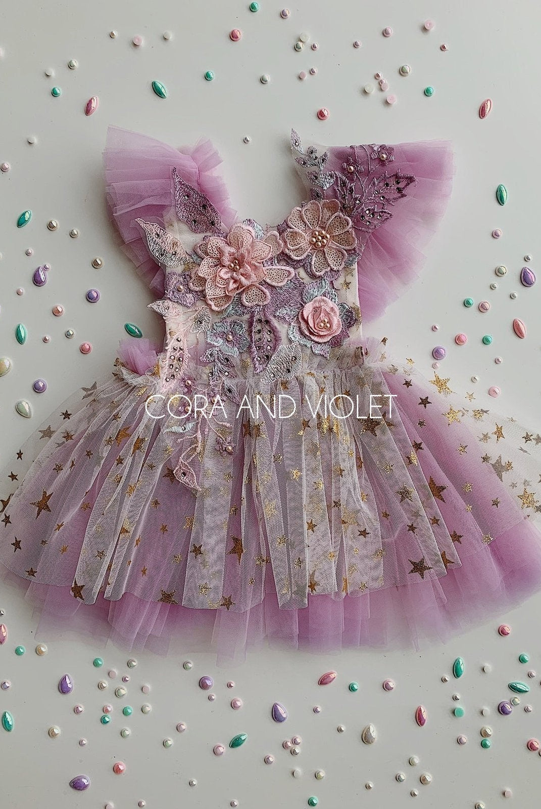 Embroidered mushrooms, sequins & 3D lace butterflies. The perfect dress for your fairies magical garden birthday!