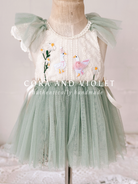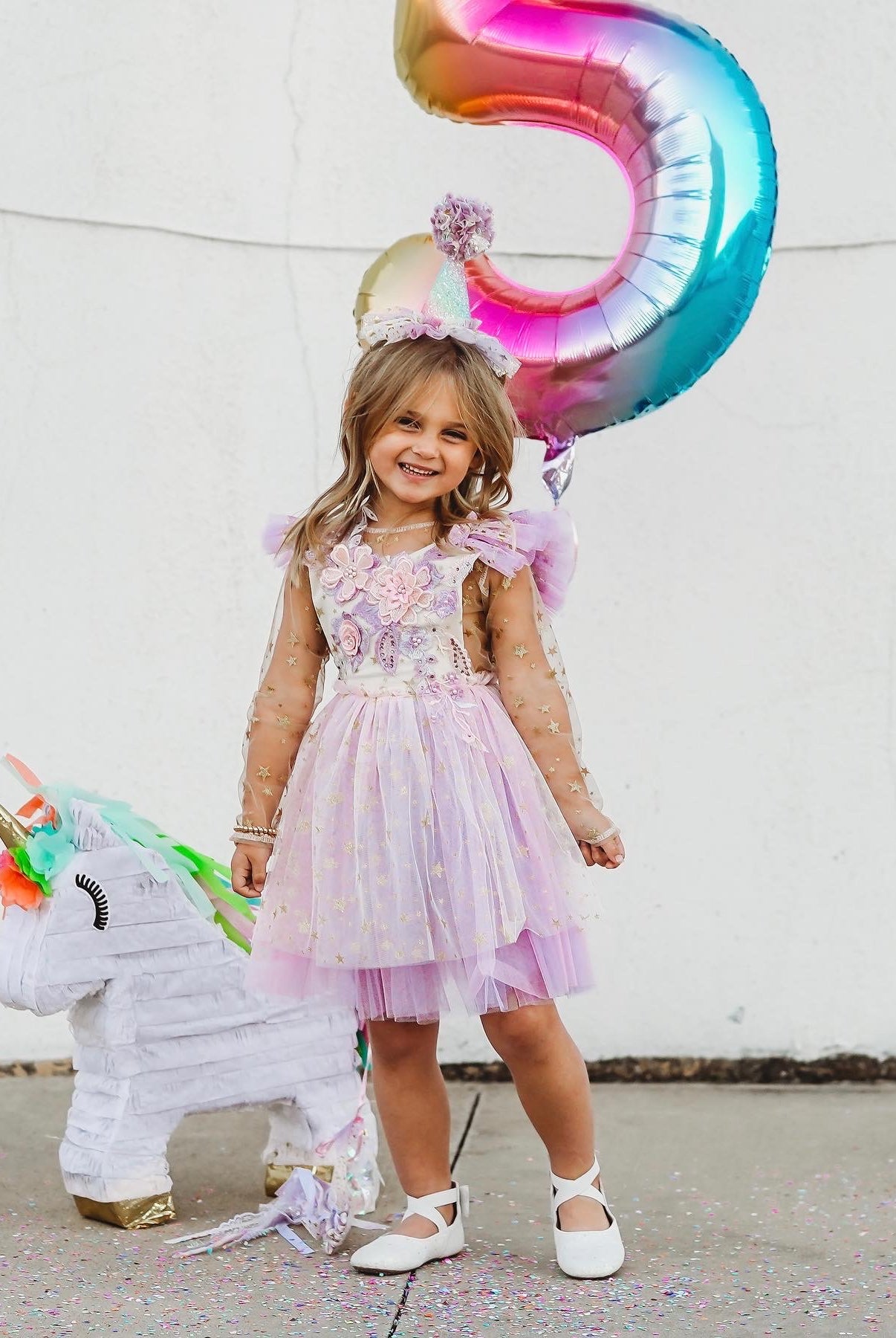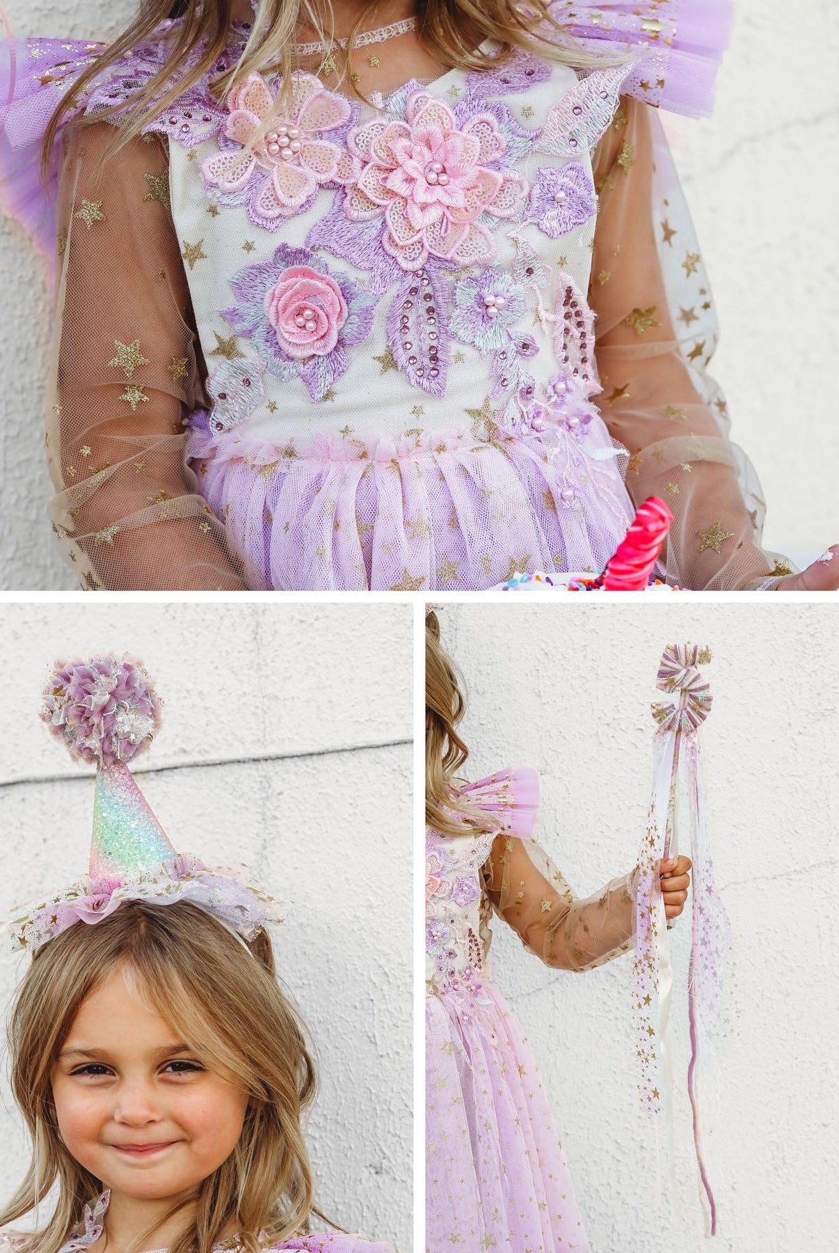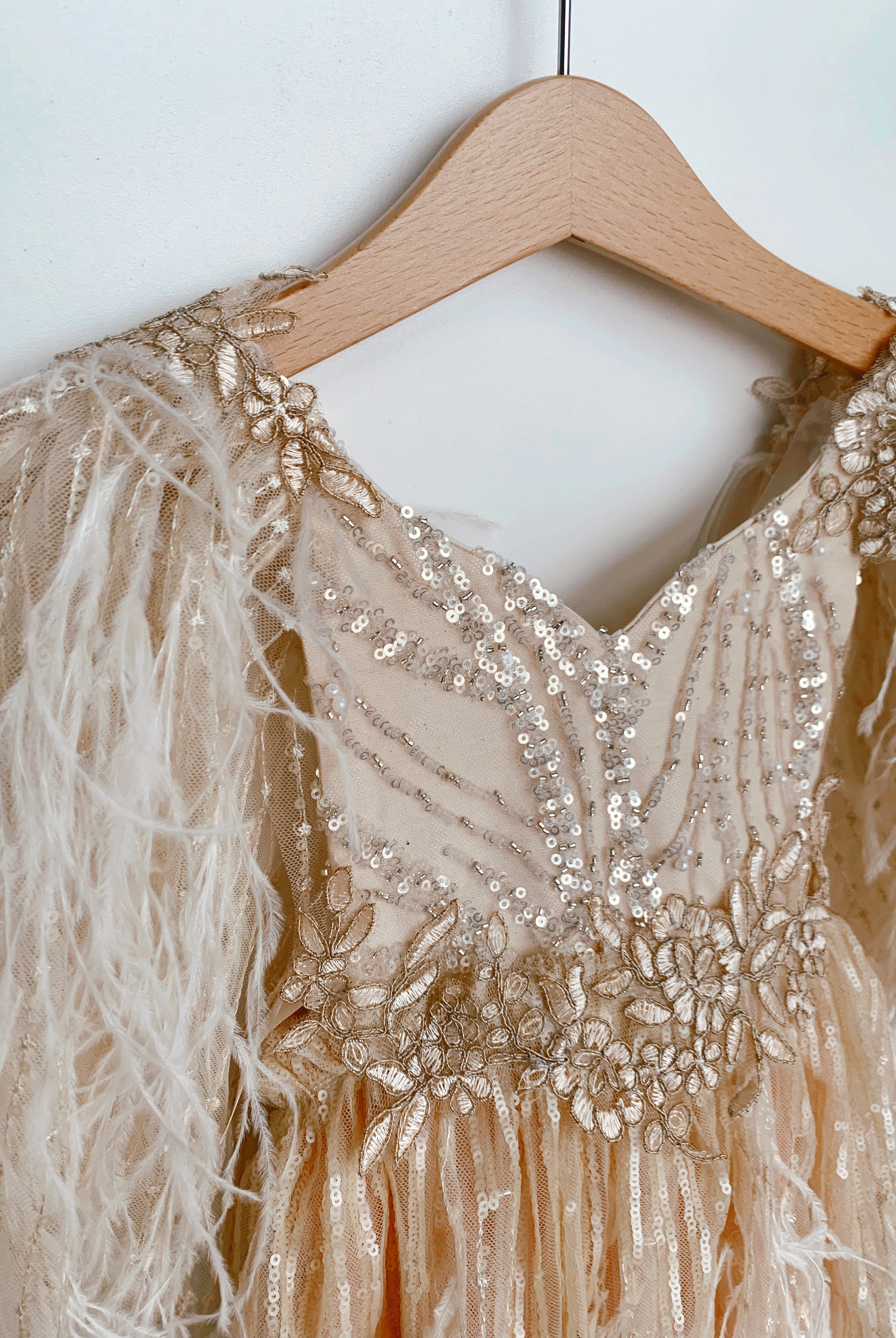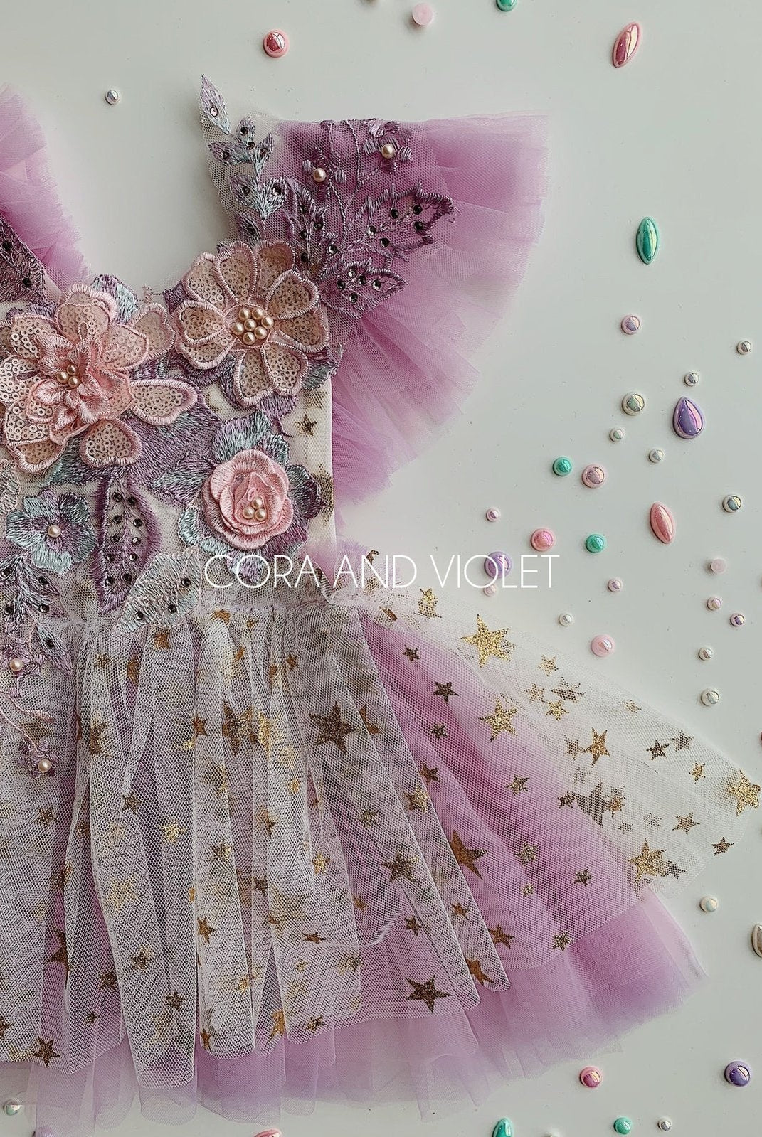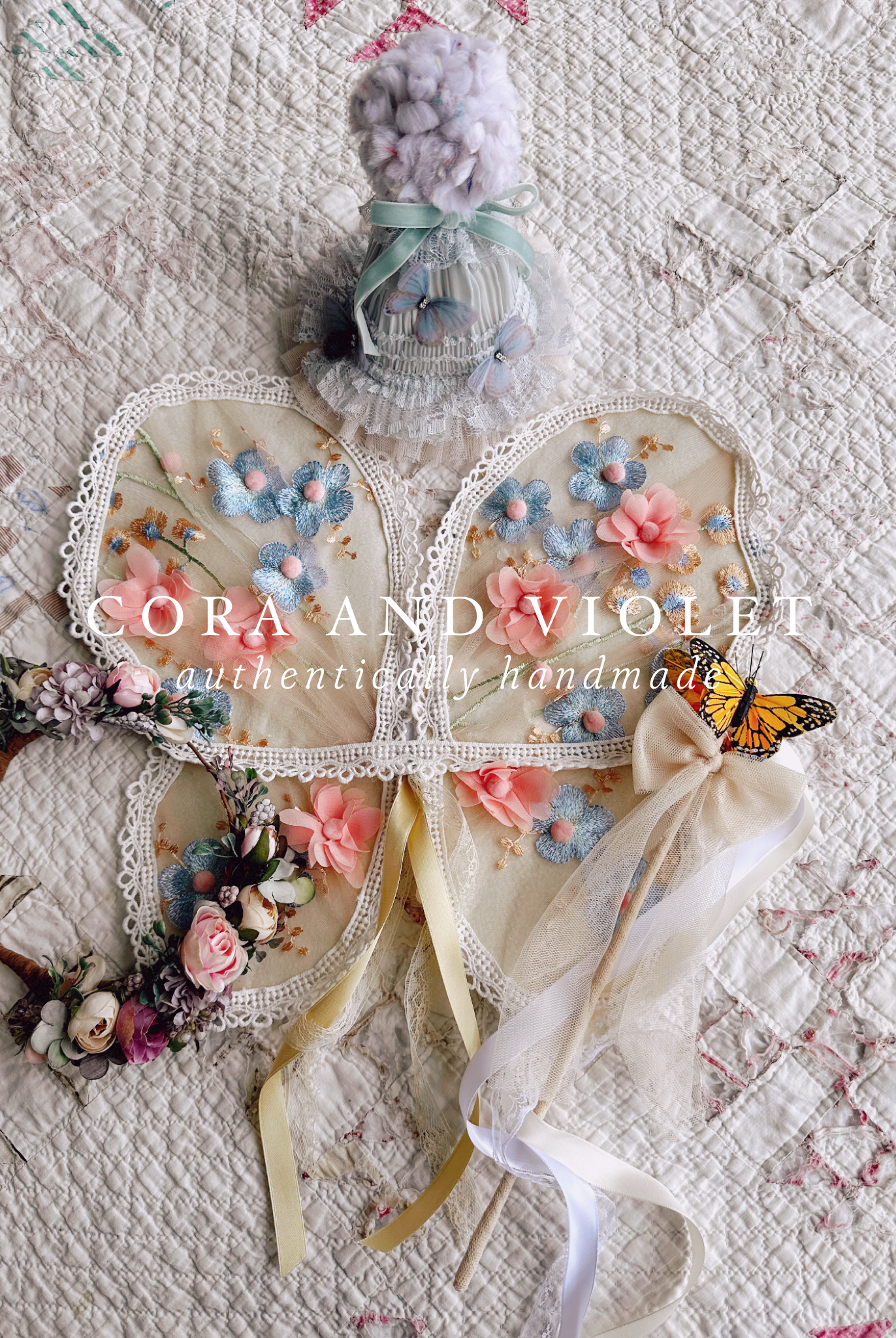 Embroidered mushrooms, sequins & 3D lace butterflies. The perfect dress for your fairies magical garden birthday!