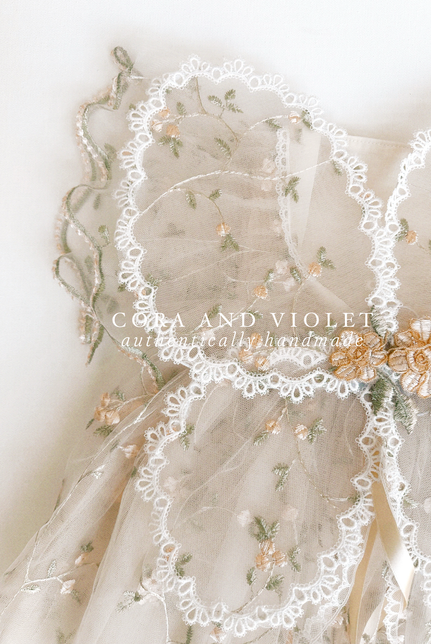The craftsmanship and detail in this @coraandviolet dress is just incredible. Each dress is hand-made and the love that went into it shows ...I've always wanted one of these dresses for her-selfishly for me. Anyone relate?The most magical and special dresses.