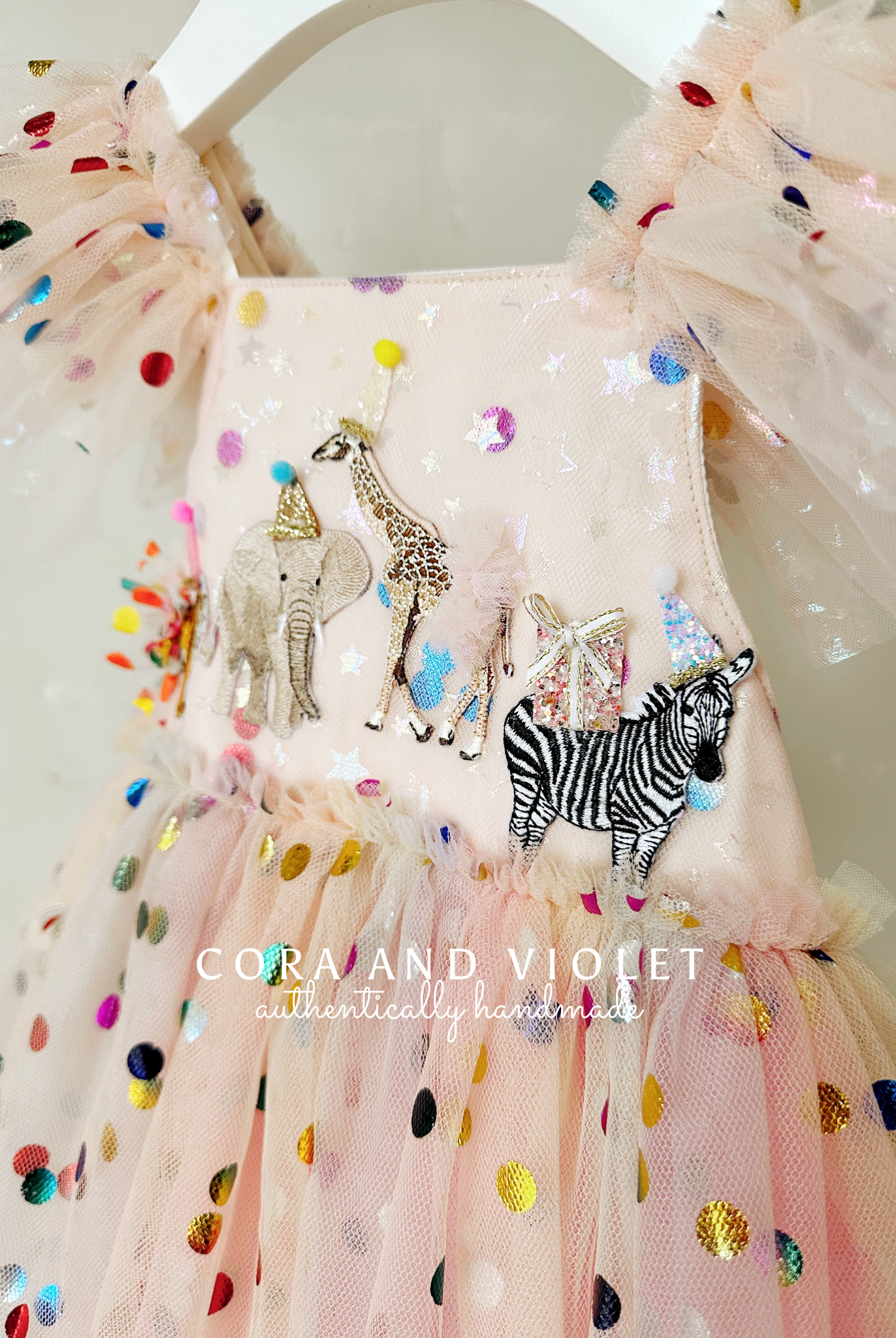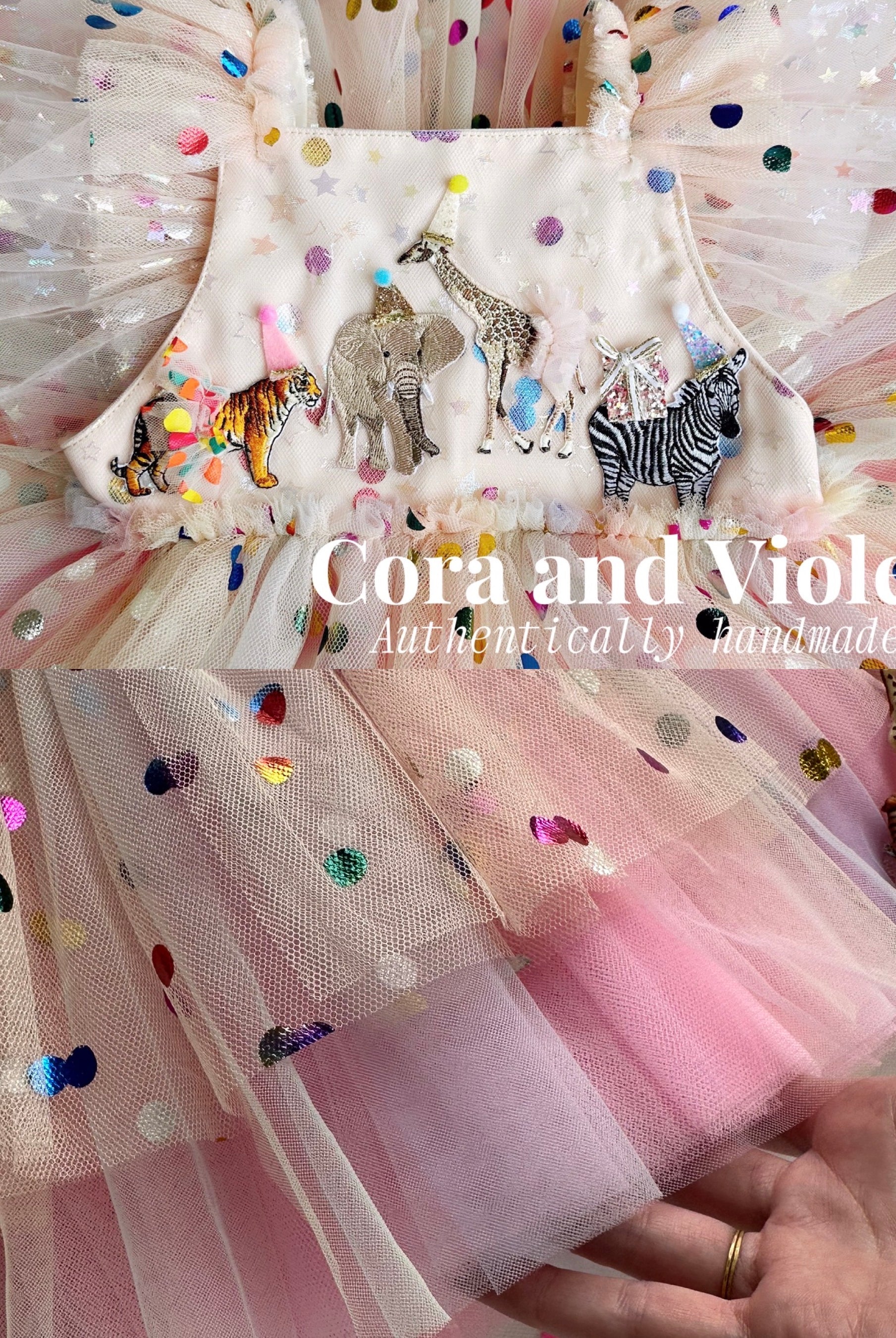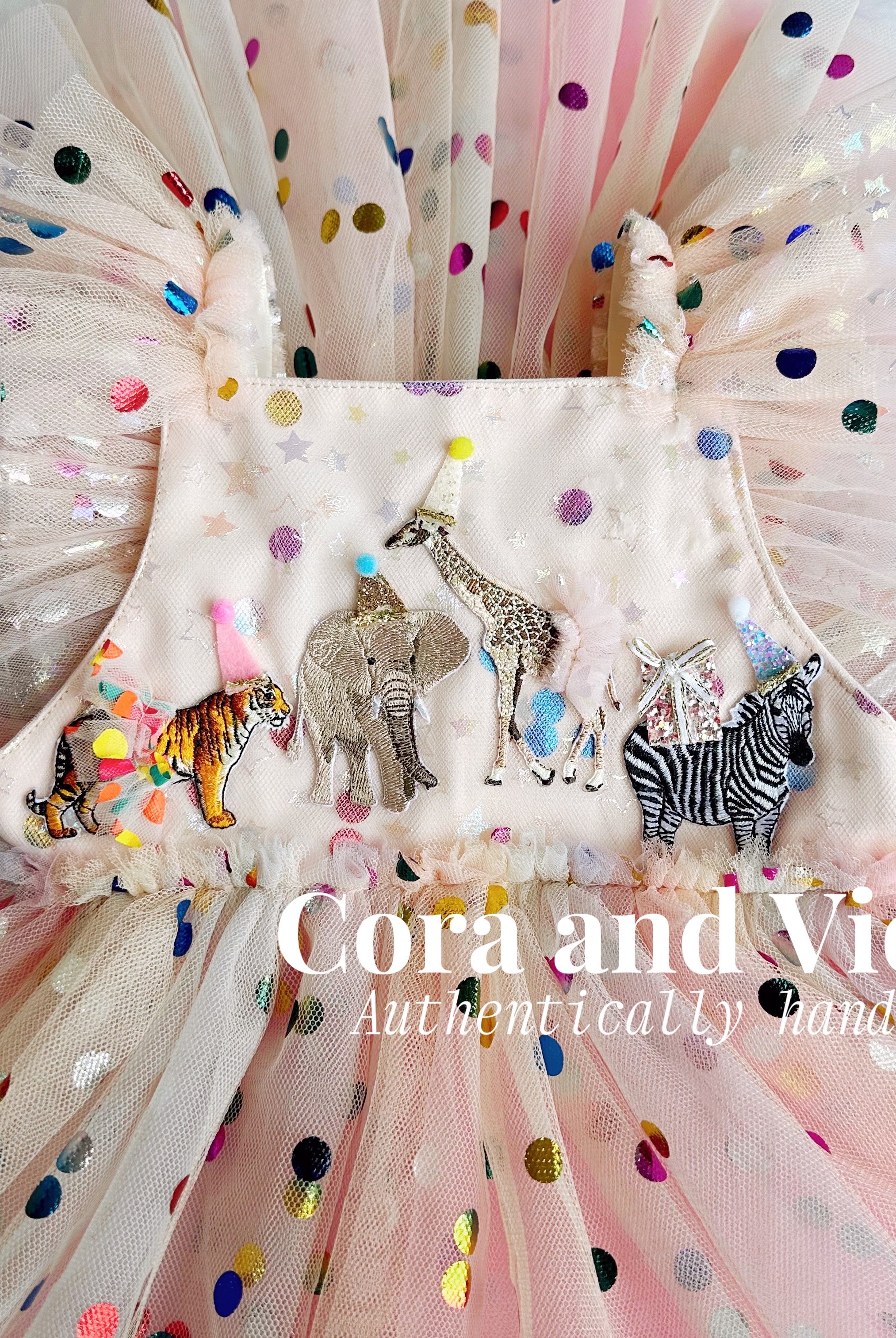 The animal dress was beautiful and perfect to celebrate our zoo themed birthday party! Everyone loved her dress. And Claire felt like a princess!!She didn't want to take it off when the party was over! Photos attached because it is stunning and helped make our day extra special!