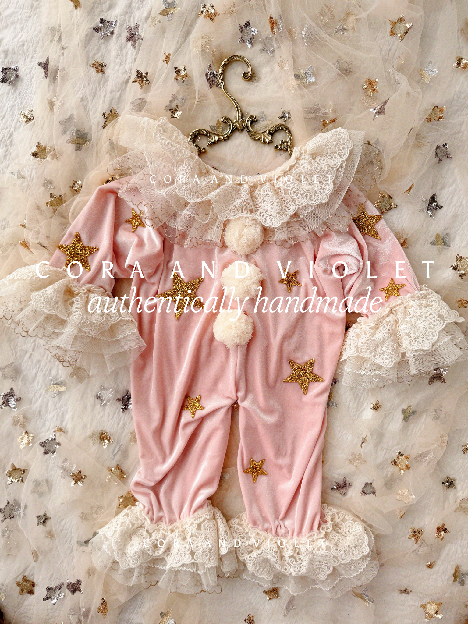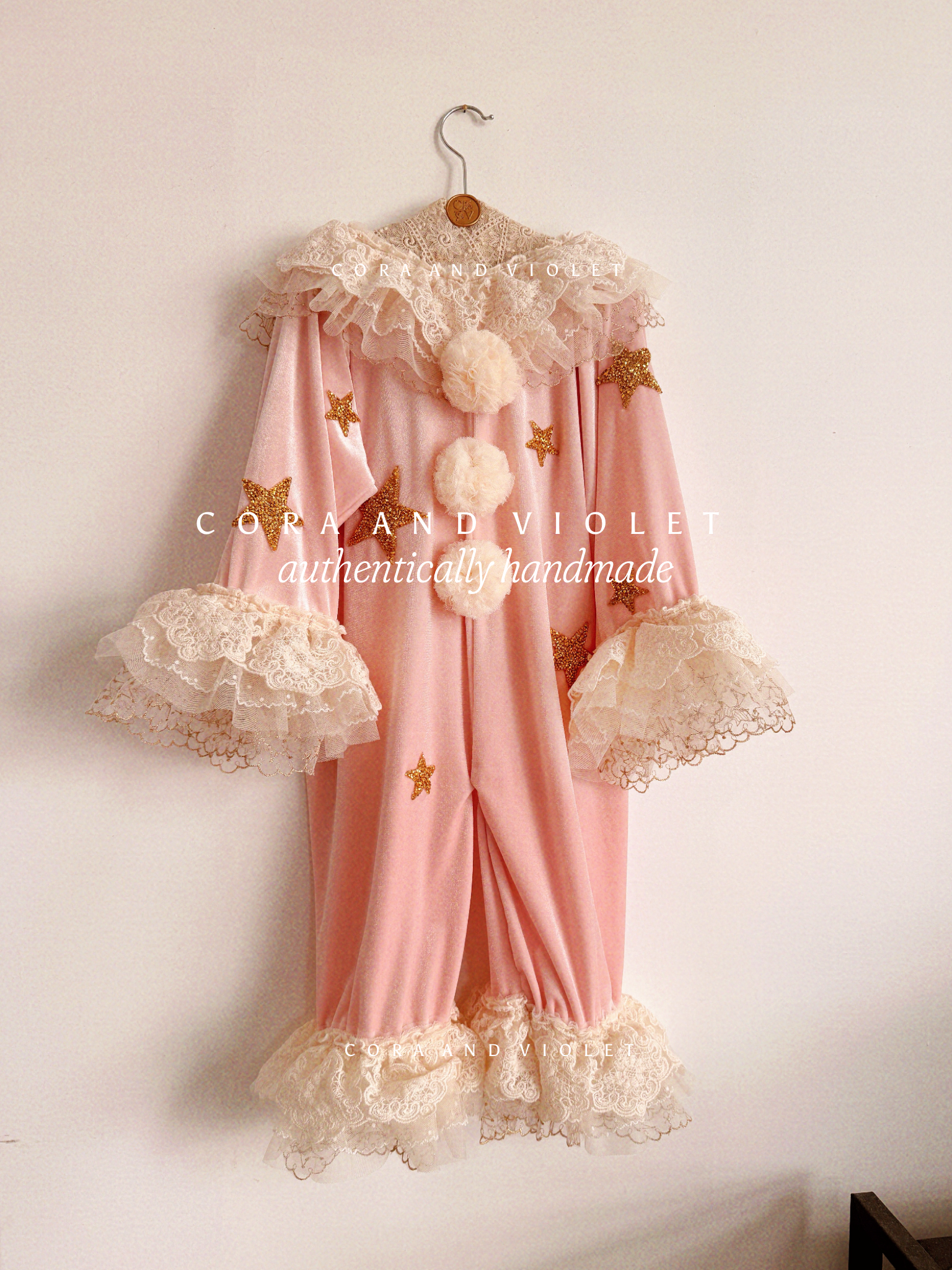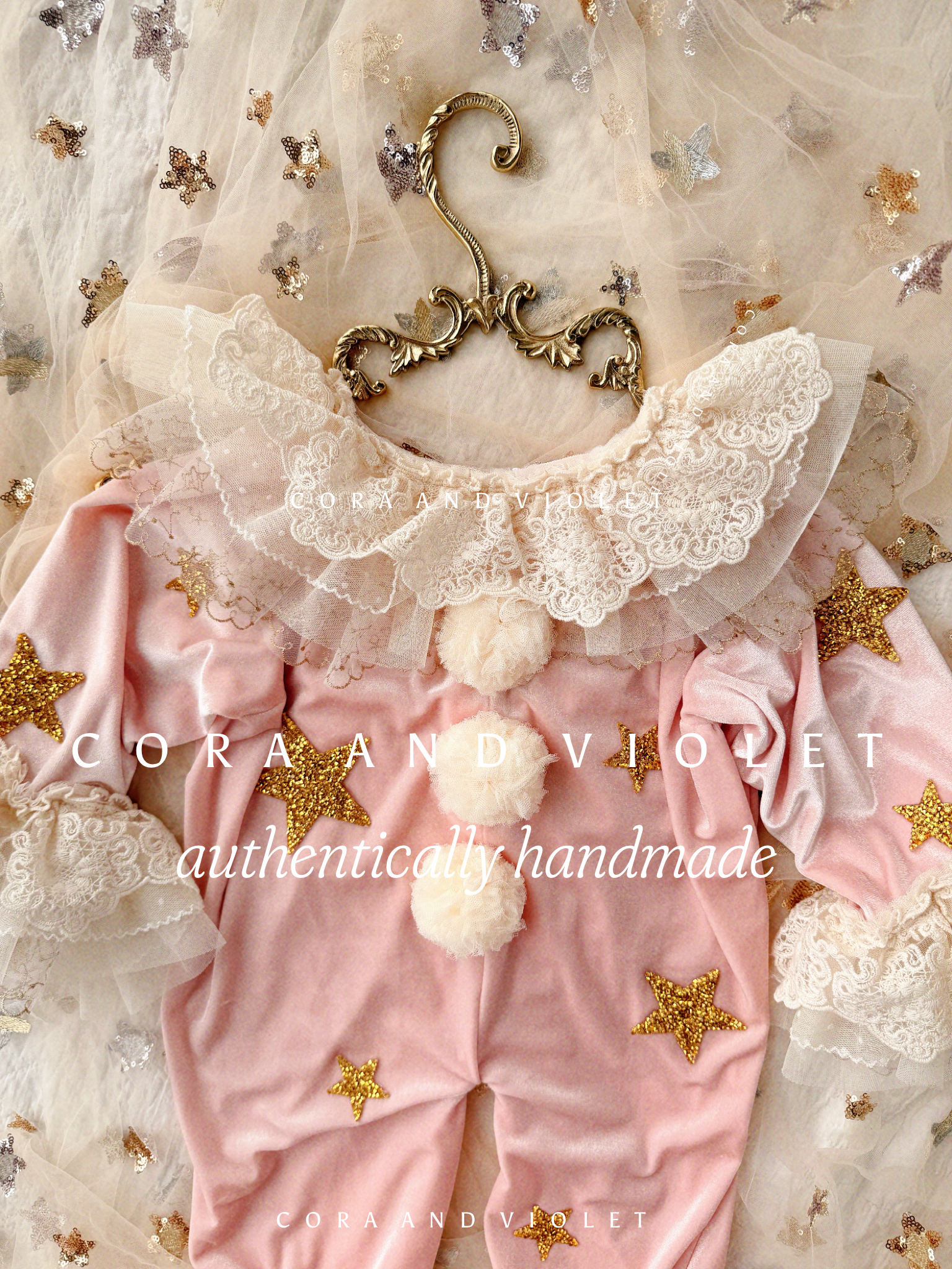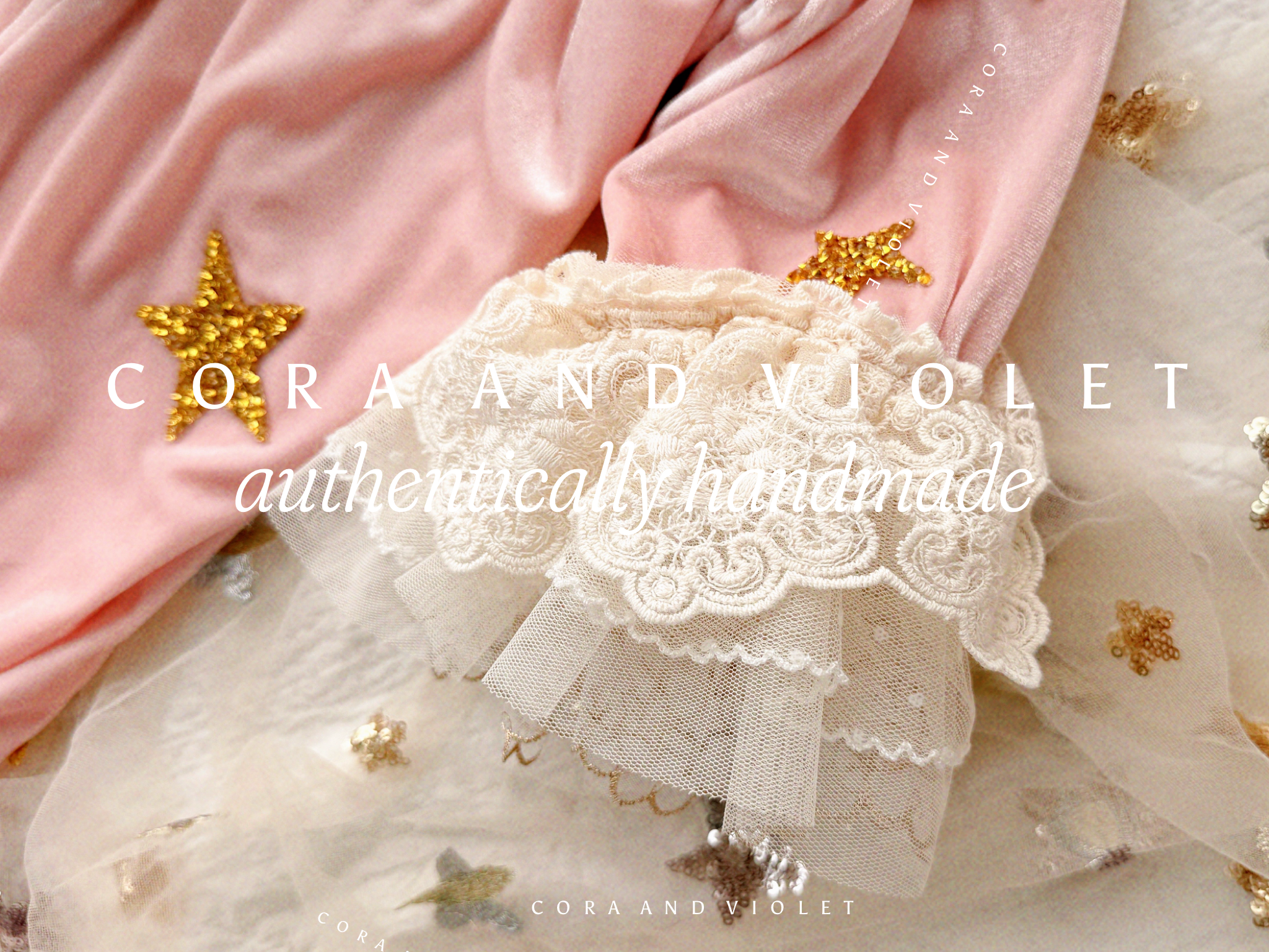 Velvet-Soft Accents: Adorned with dainty pink velvet bows at the waist for a touch of vintage-inspired charm.