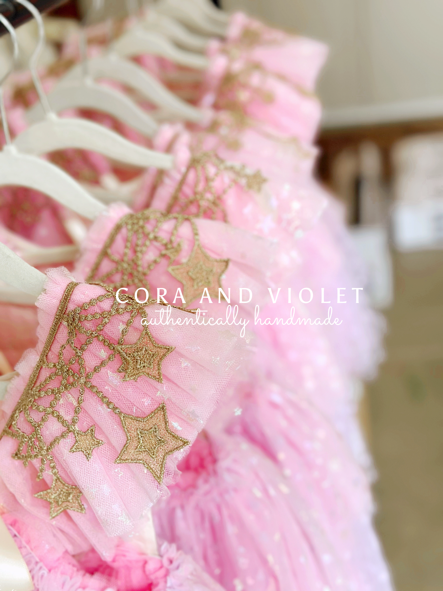 A Labor of Labor: Every Itty Mouse gown is a masterpiece of intentionality. Hand-cut and tailored from scratch in our Ohio studio, Bailey pours hours of craftsmanship into every star and stitch. Because each piece is handmade, your gown is a unique original—just like her.