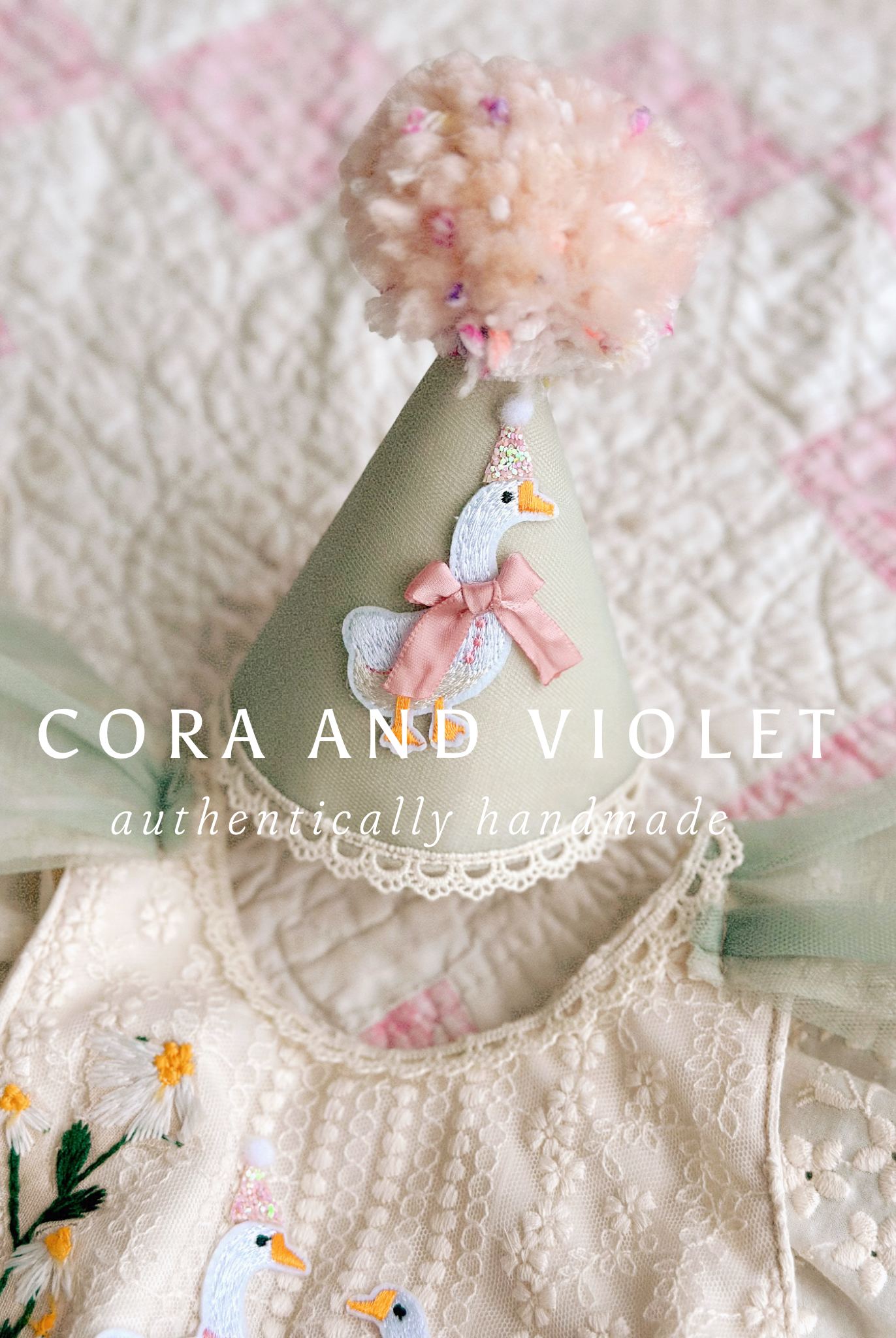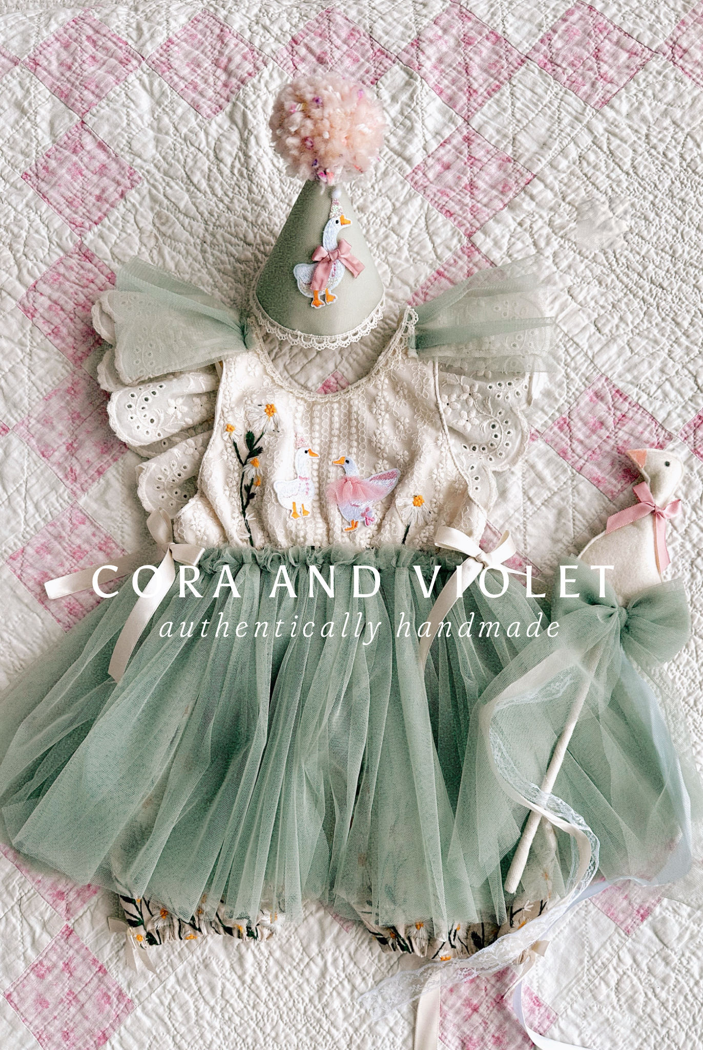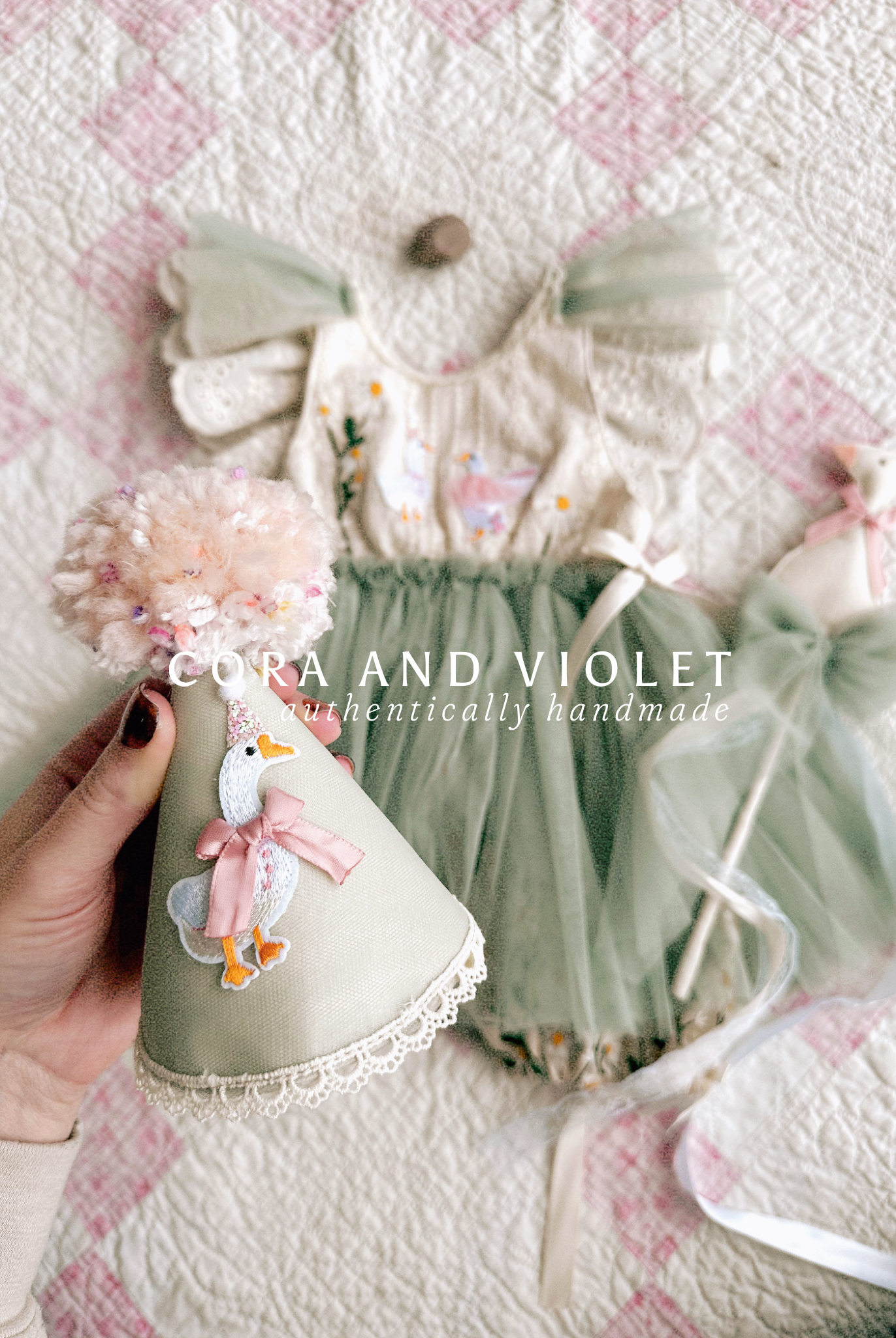 At Cora and Violet, we believe that a First Birthday Goose Theme is the epitome of classic childhood whimsy. Our Silly Goose & Storybook Collection is a curated selection of hand-stitched garments designed to turn your little one’s milestone into a living fairytale. From the iconic "Lucy" dress to our artisan-crafted accessories, every piece is a labor of love, tailored in our rural Ohio studio to ensure your "One Silly Goose" celebration is as unforgettable as it is beautiful.
