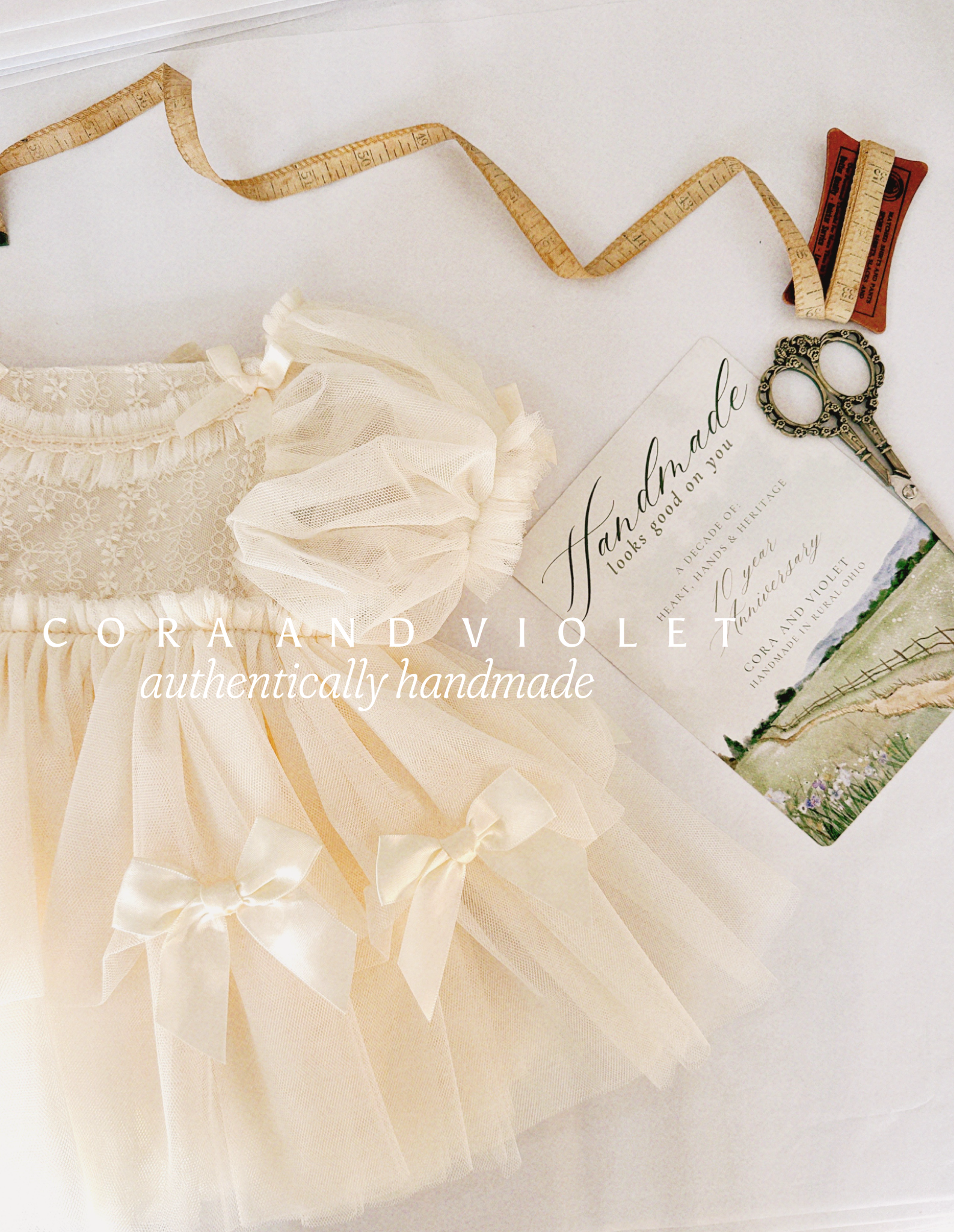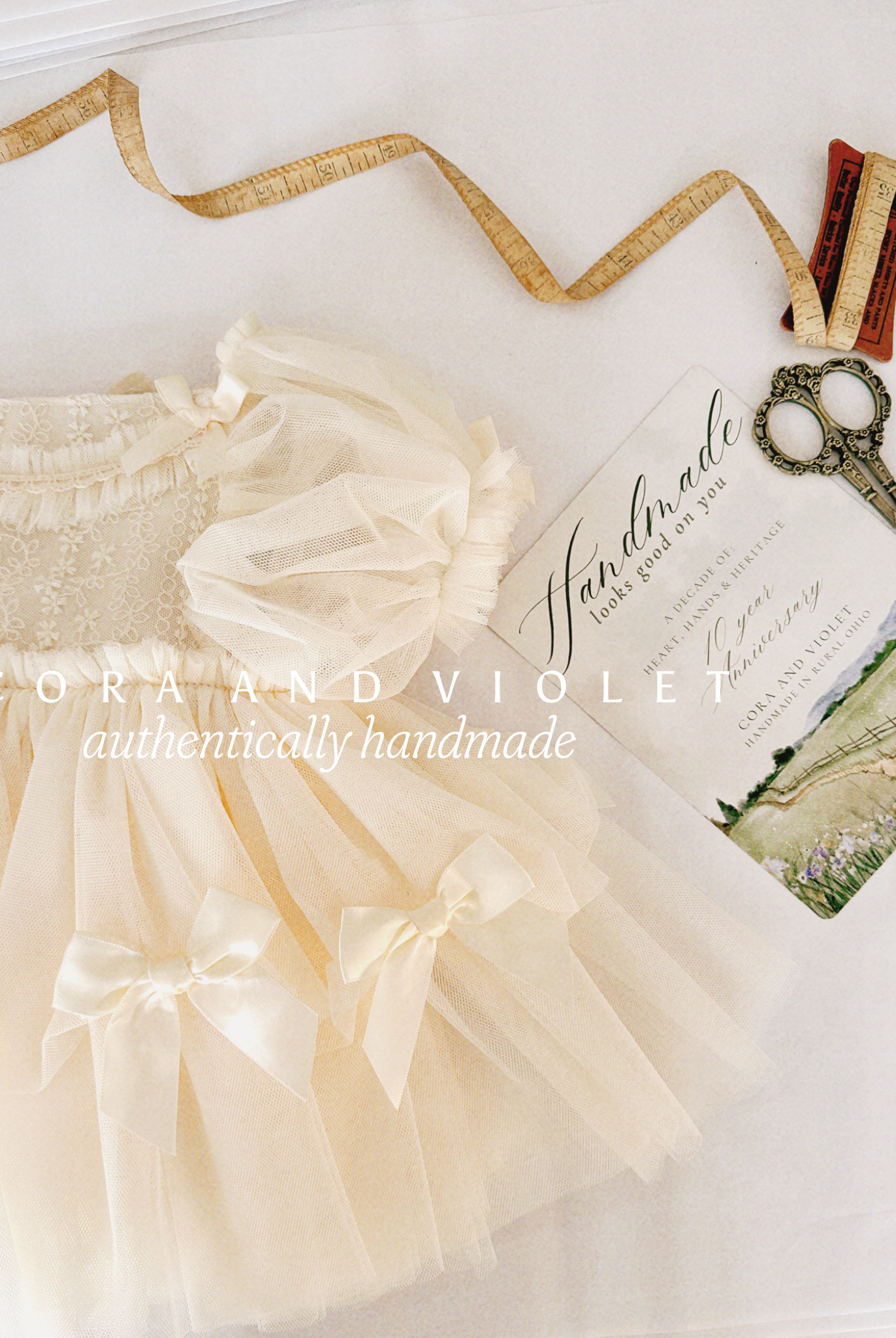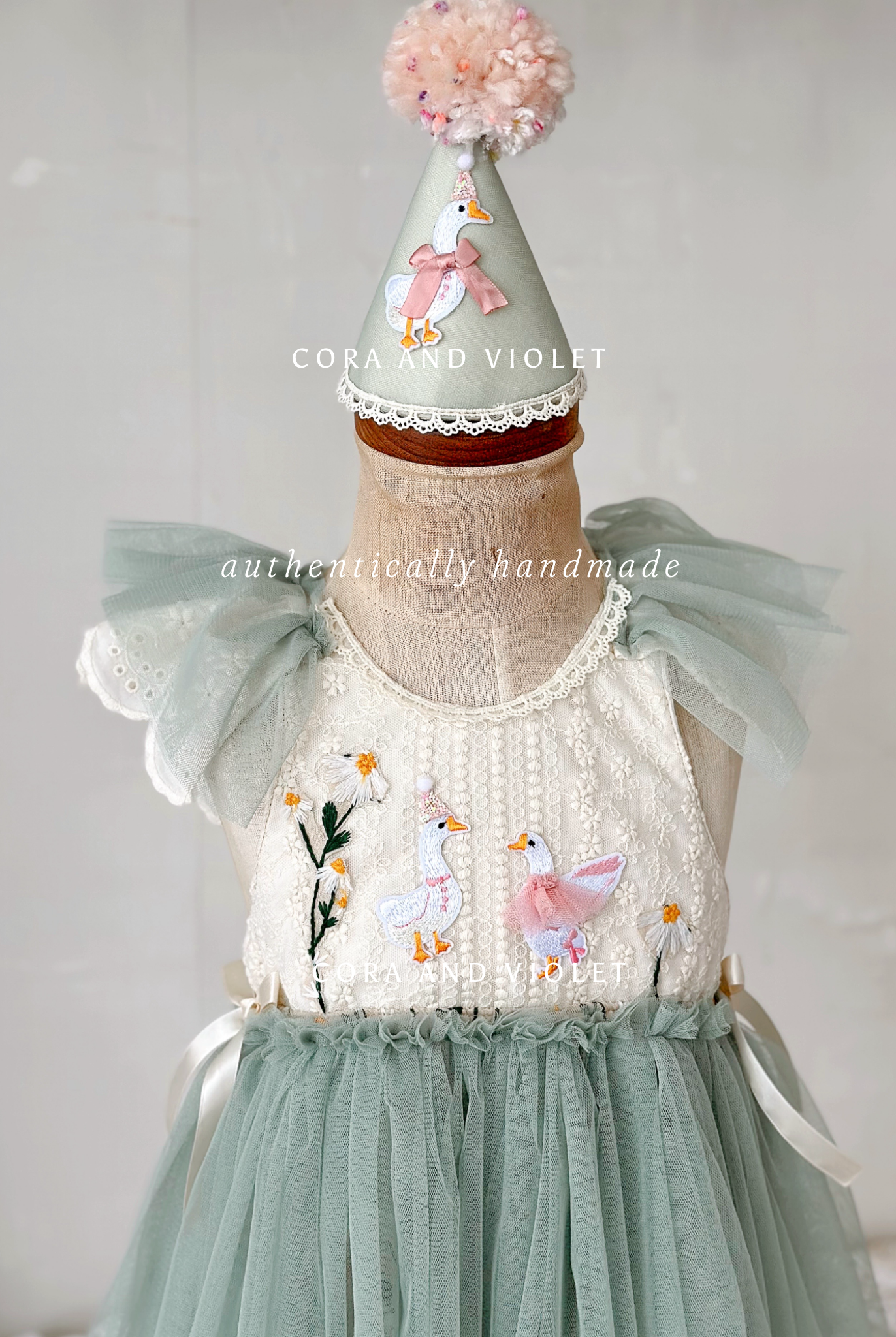 Choosing a Cora and Violet heirloom means choosing a decade of artisan expertise. Unlike mass-produced costumes, our Silly Goose outfits are built to be cherished long after the party ends. They are the pieces that will be tucked away in keepsake boxes, holding the memories of her first cake smash and those sun-drenched garden photos. Explore our collection of hand-applied appliqués, 3D textures, and storybook-inspired silhouettes to find the perfect piece for your little dreamer.