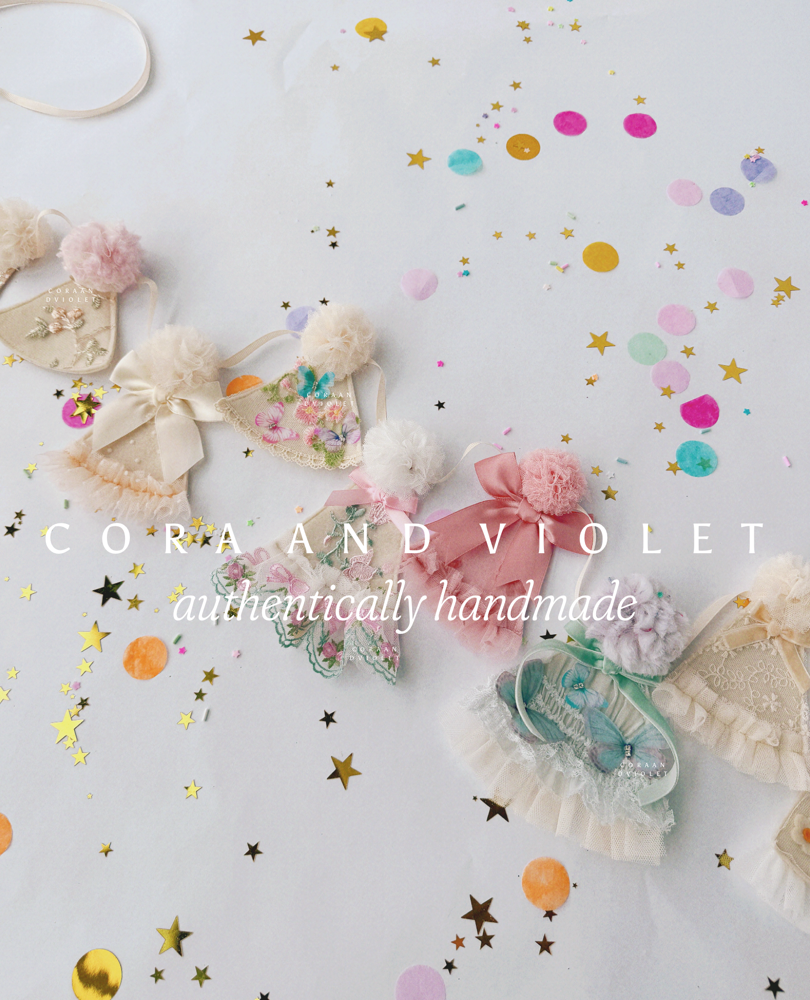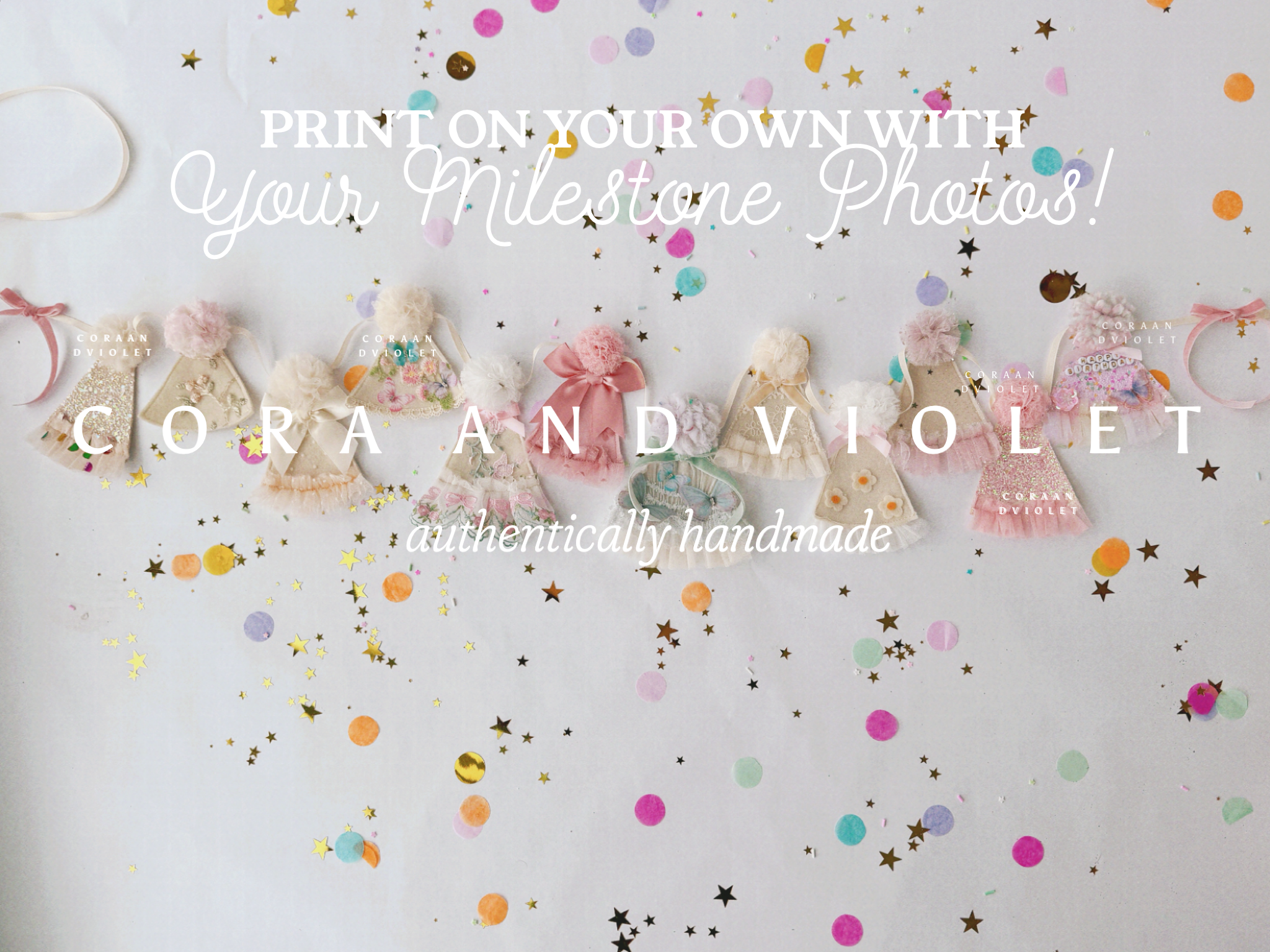 Handcrafted for Memories: Cora and Violet creations are artisan-made photography props and milestone garments designed for supervised use. Because each piece is a bespoke work of art—often incorporating vintage textiles, delicate laces, and hand-applied adornments—they are not intended for sleepwear or unsupervised play.