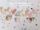 Our Heirloom 12-Month Baby Face Banner brings your monthly milestone photos to life in the most whimsical way. This isn't just a party decoration; it’s a gallery of your baby’s first year, crowned with our most-loved, best-selling Cora and Violet artisan party hats.