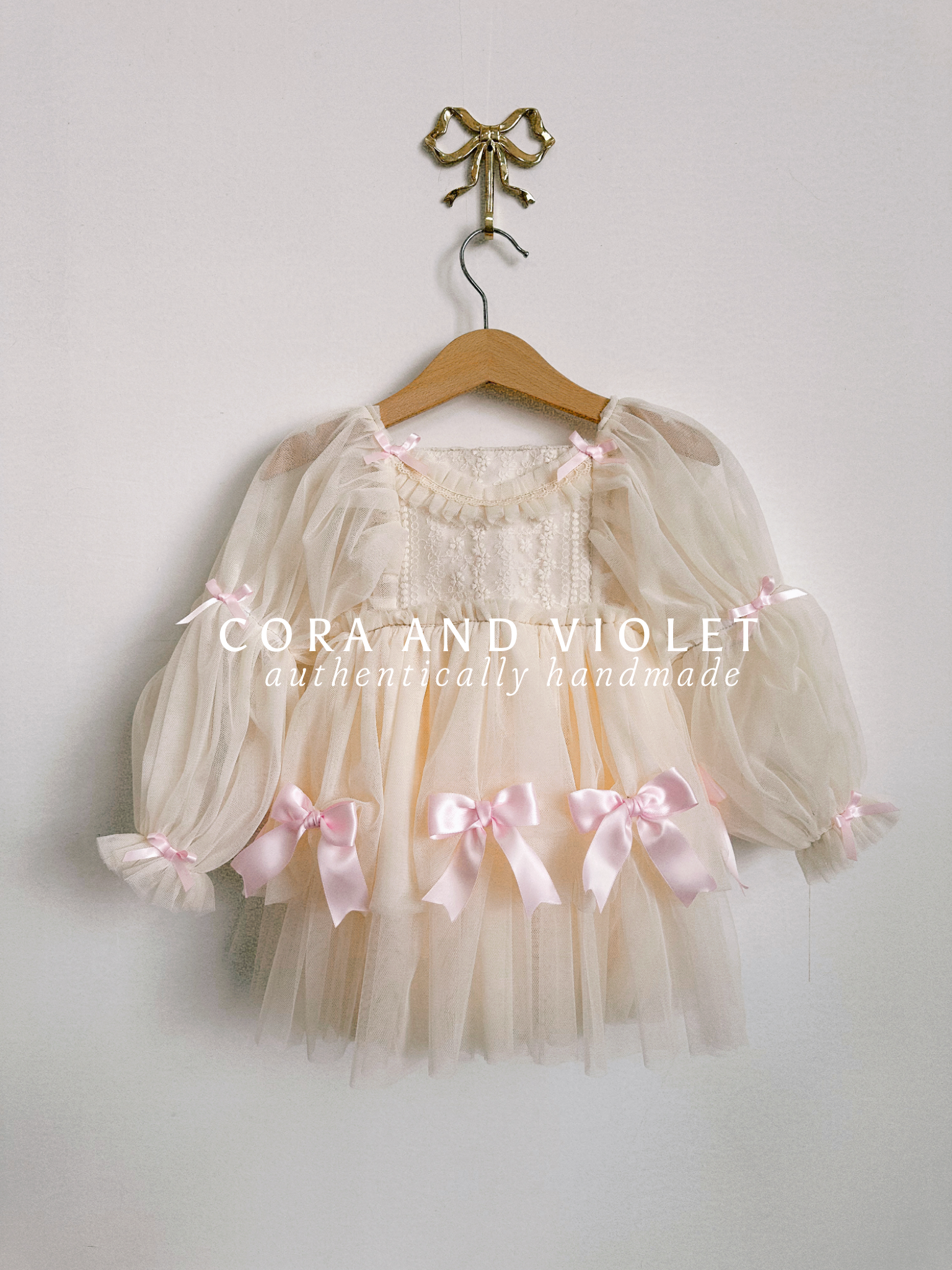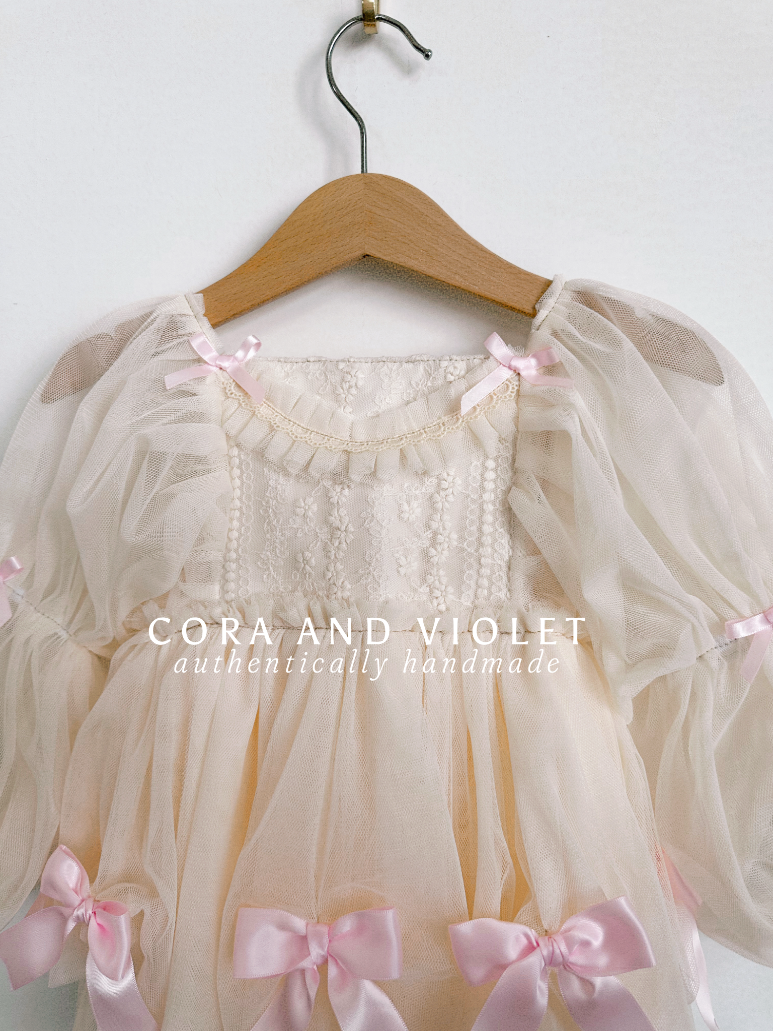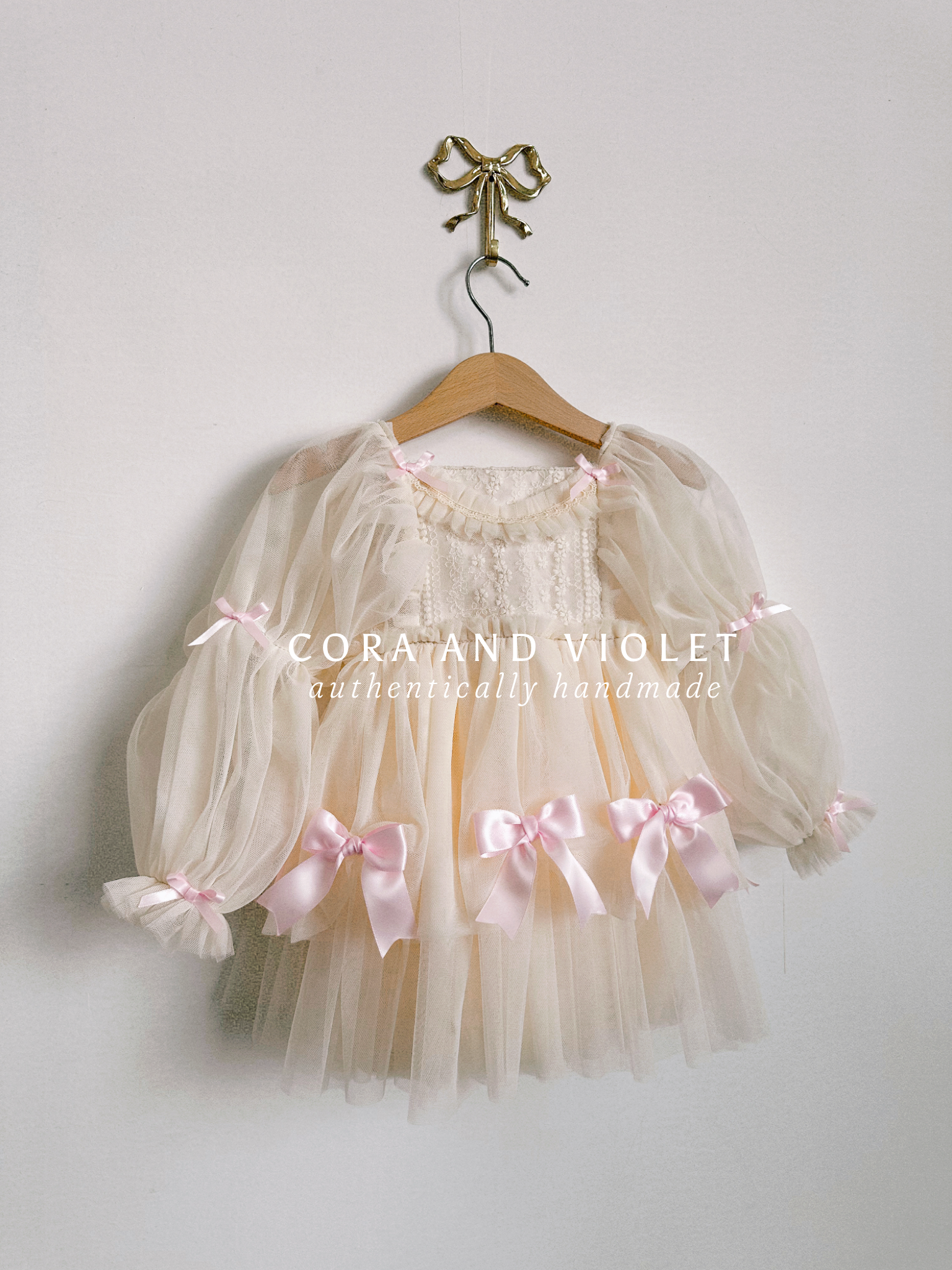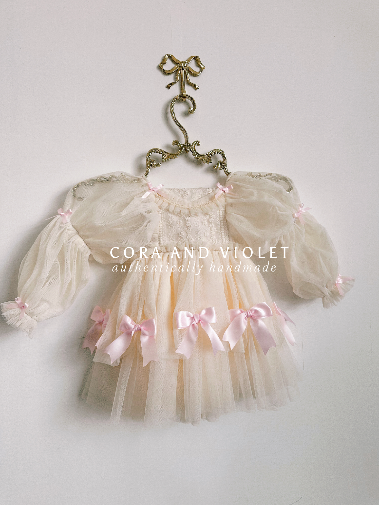 The Signature Statement Bow: Dramatic, hand-tied bows at the back create a stunning silhouette, making her look like a gift that was meant to be cherished. Choose from soft Cream or Rose Pink to match her personality.
