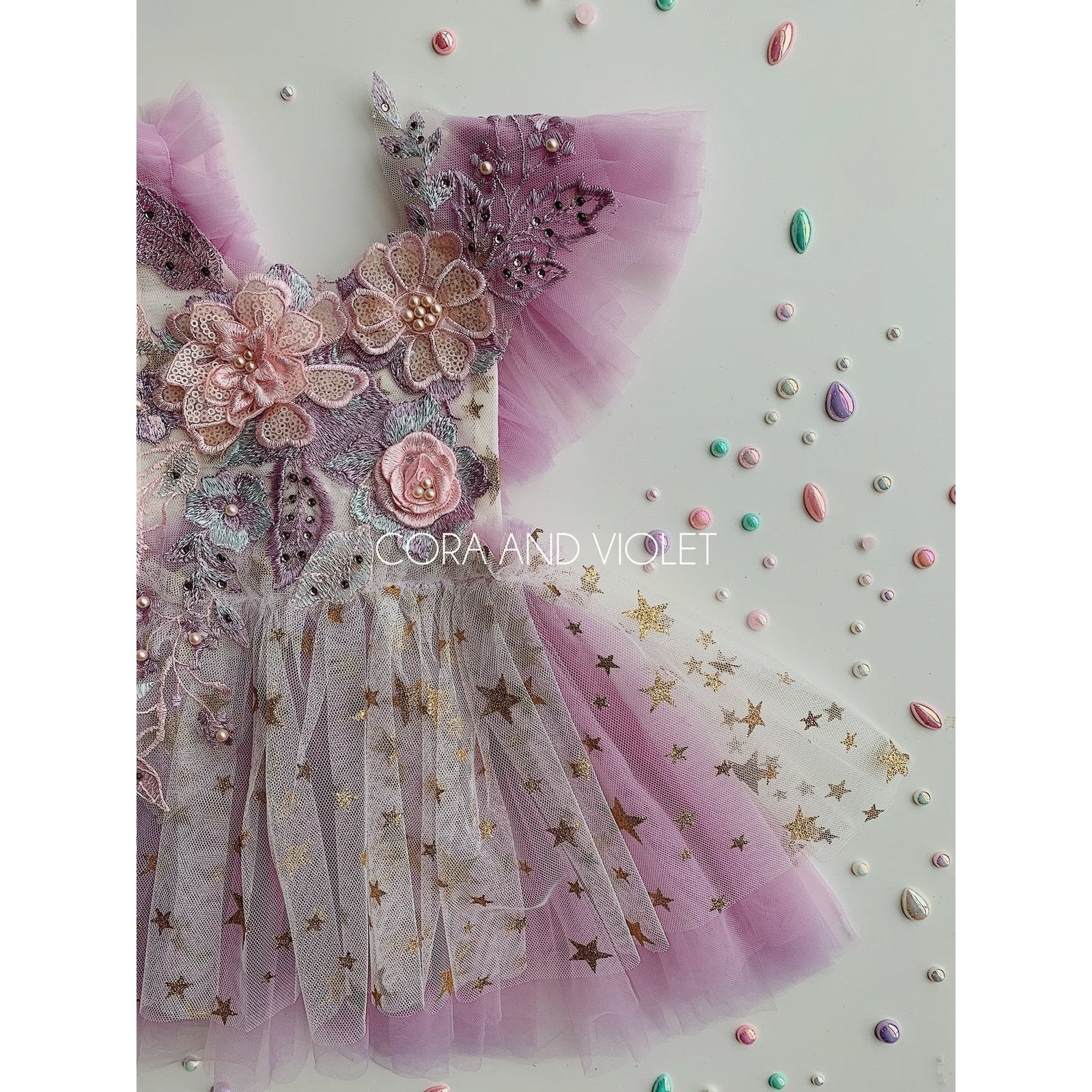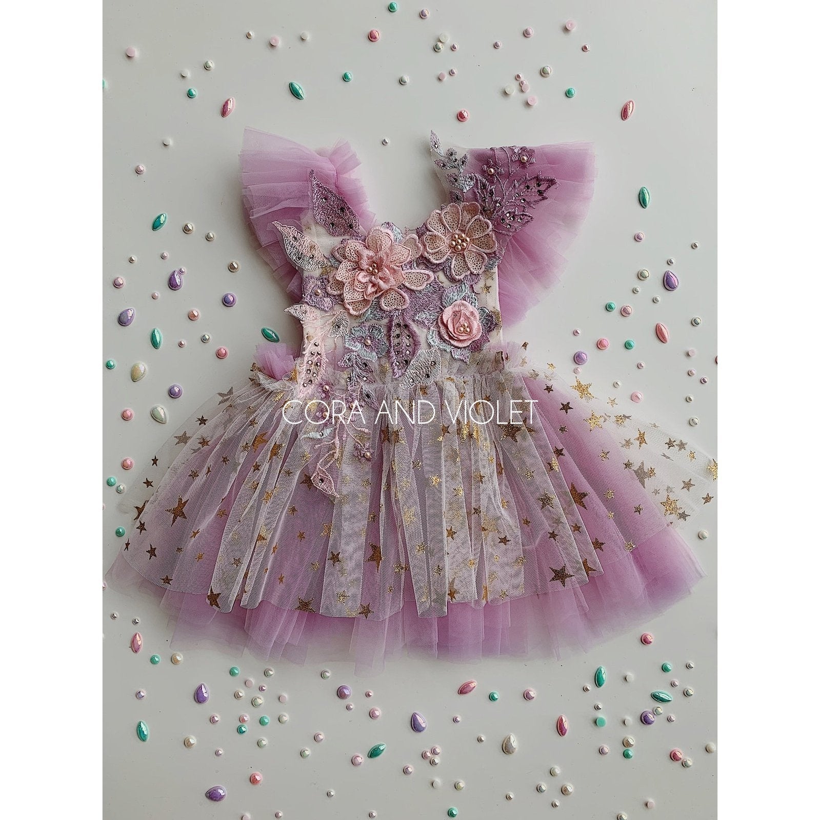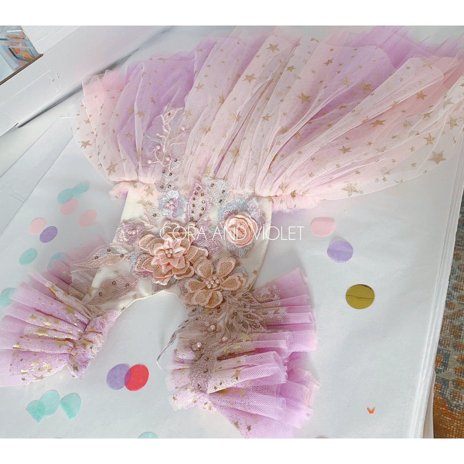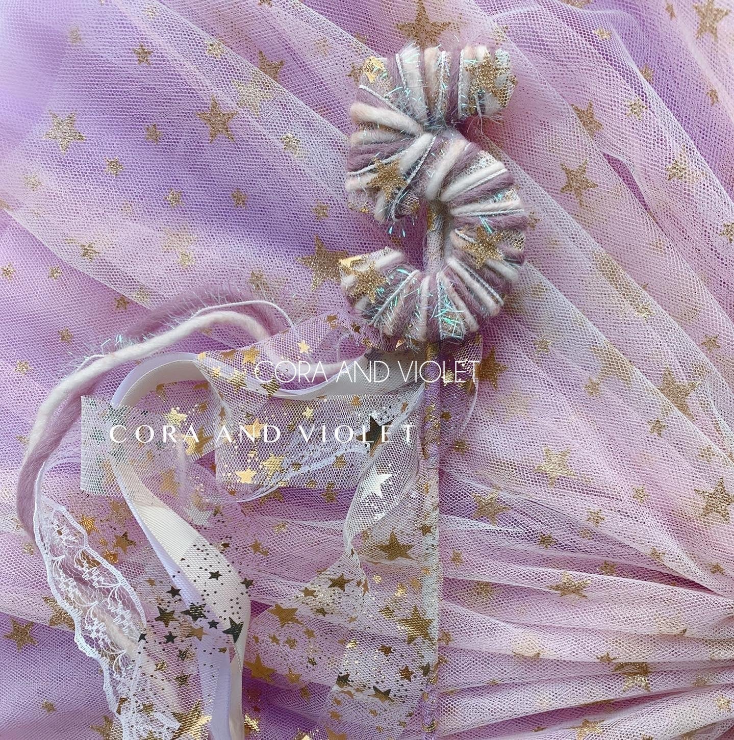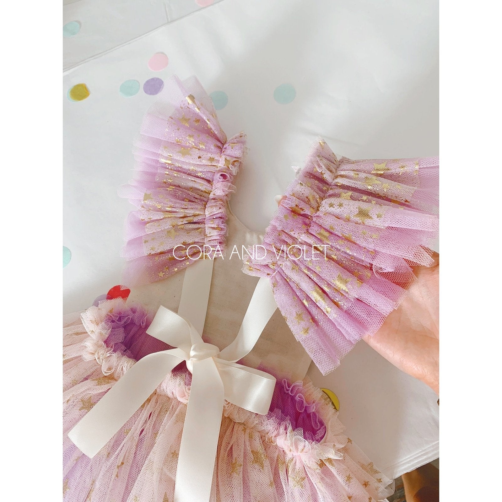 Purple and pink tulle blended together perfectly topped with a lovely gold glittery star tulle.