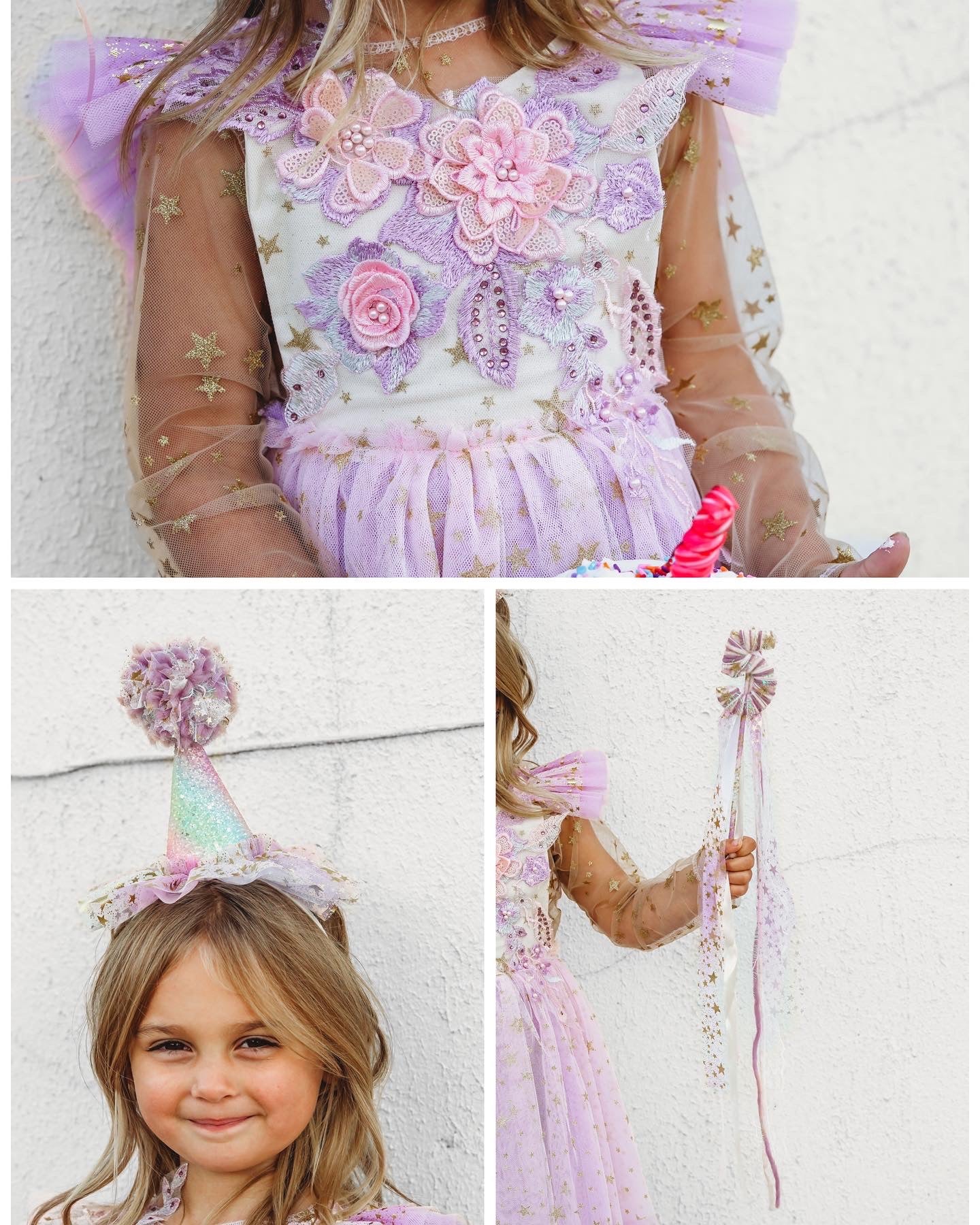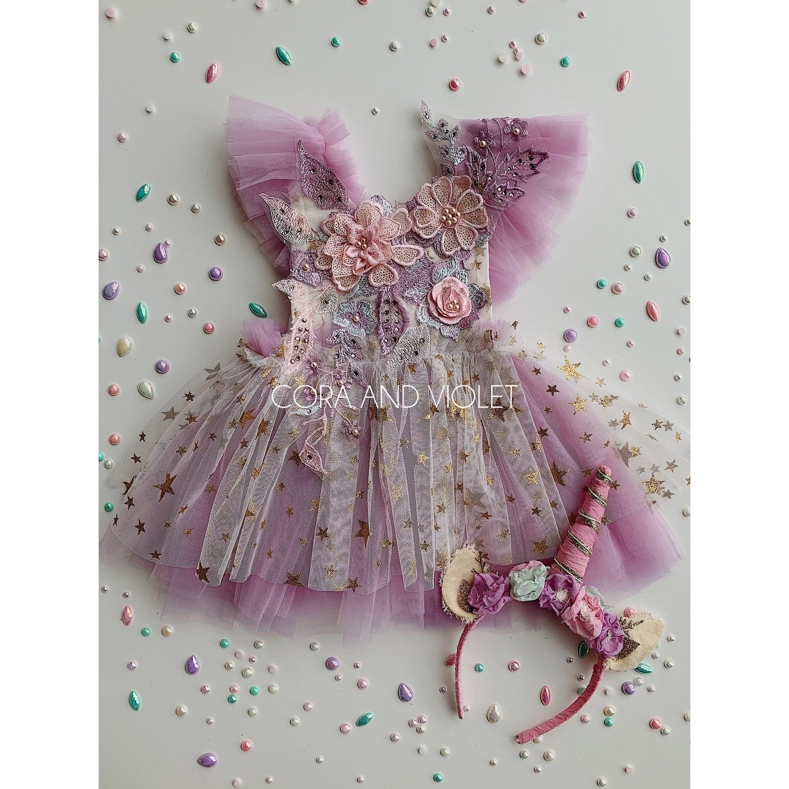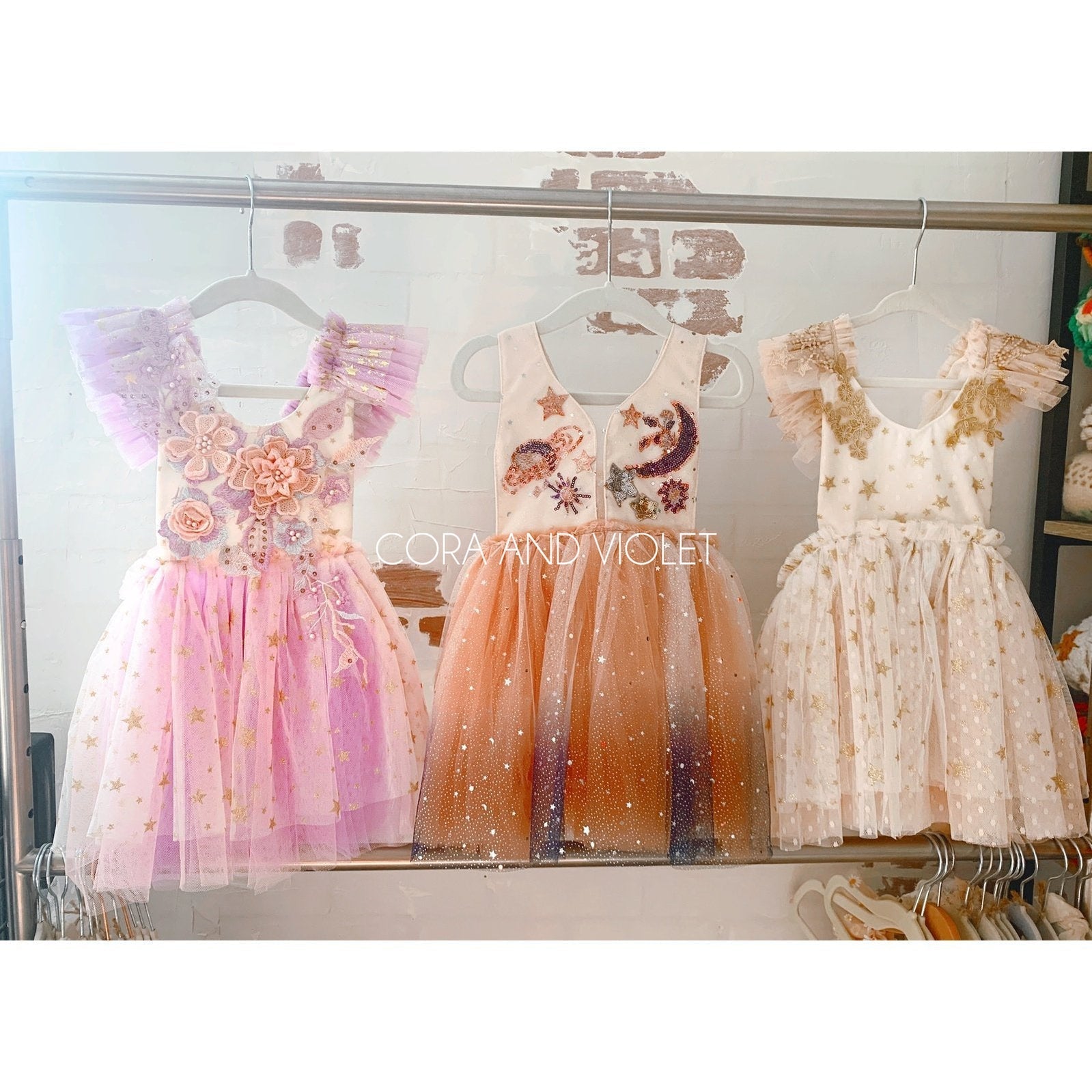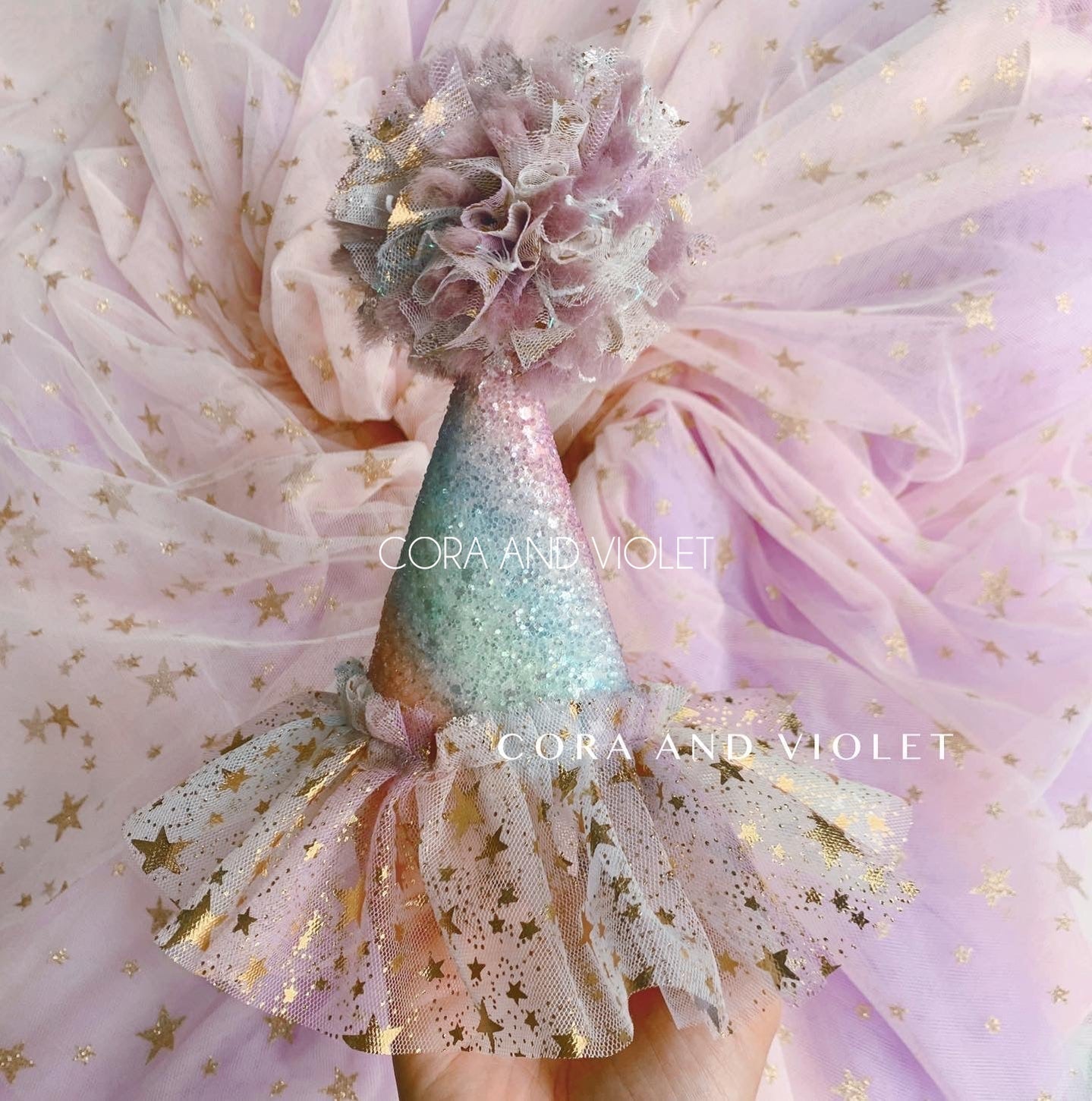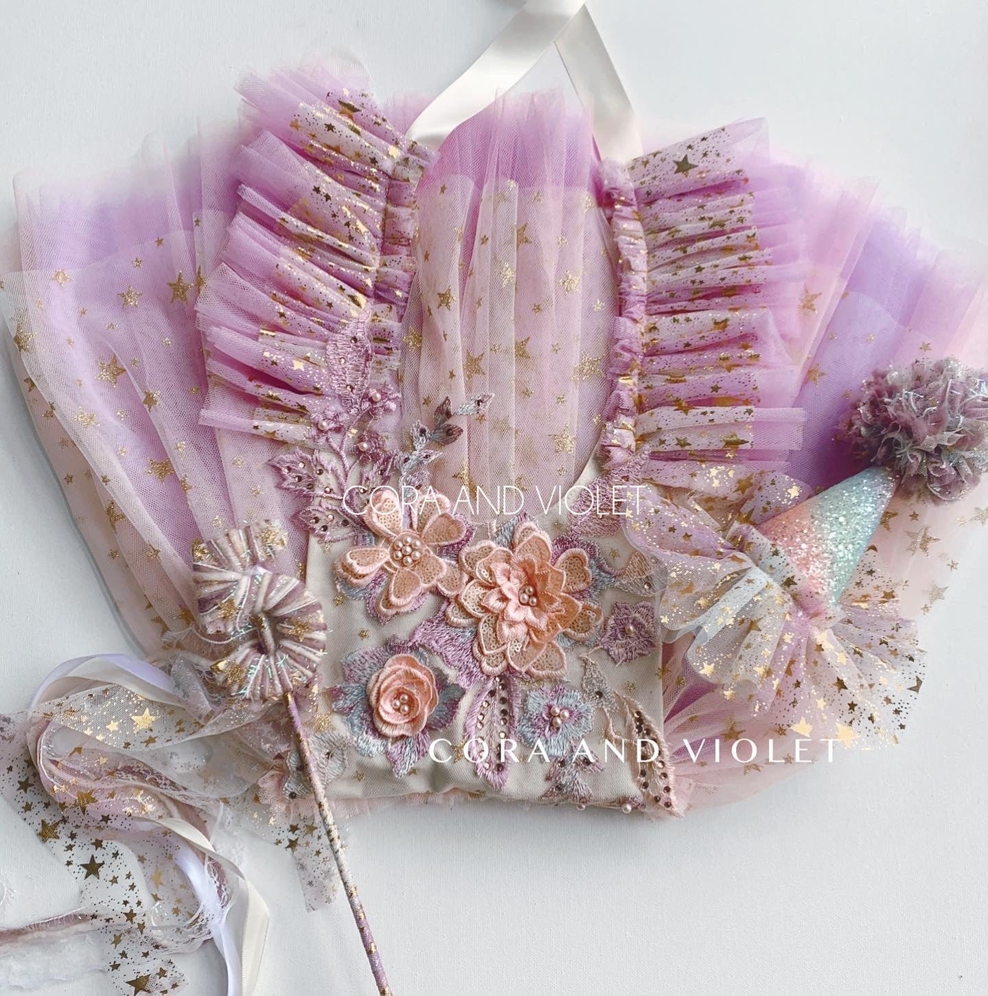 Purple and pink tulle blended together perfectly topped with a lovely gold glittery star tulle.