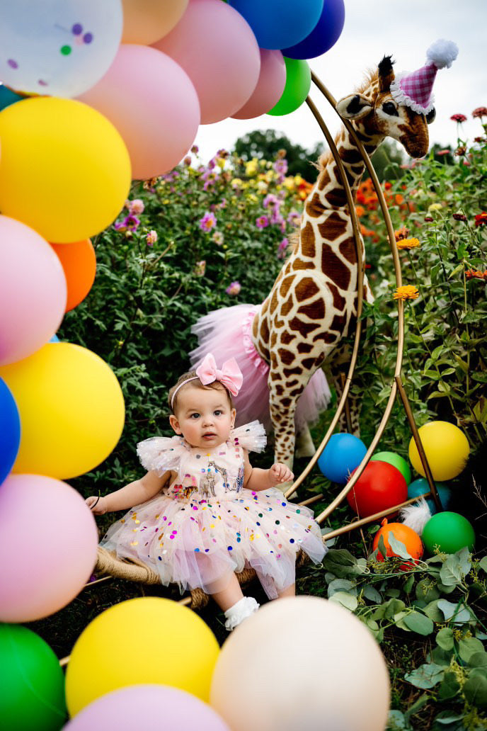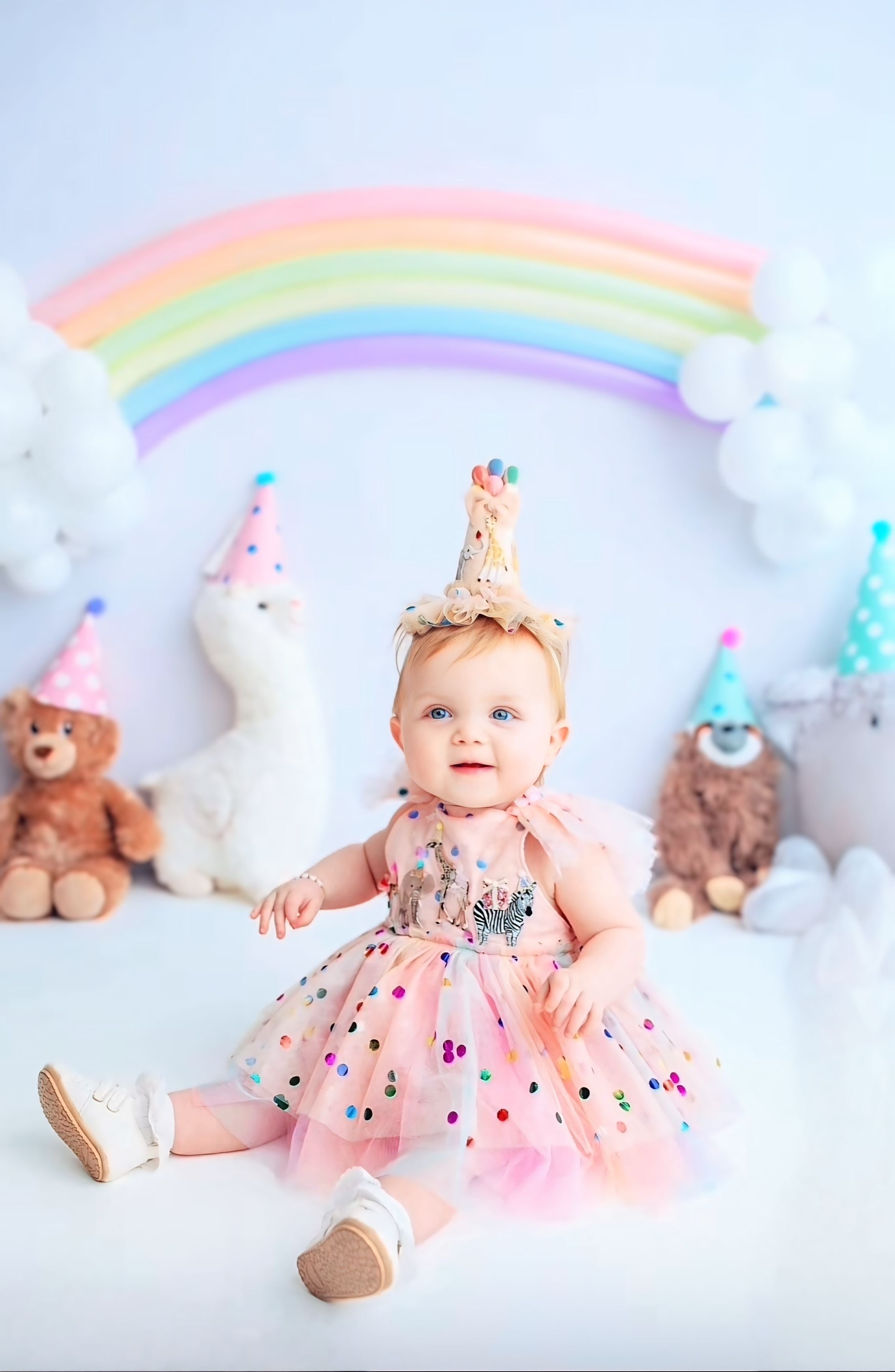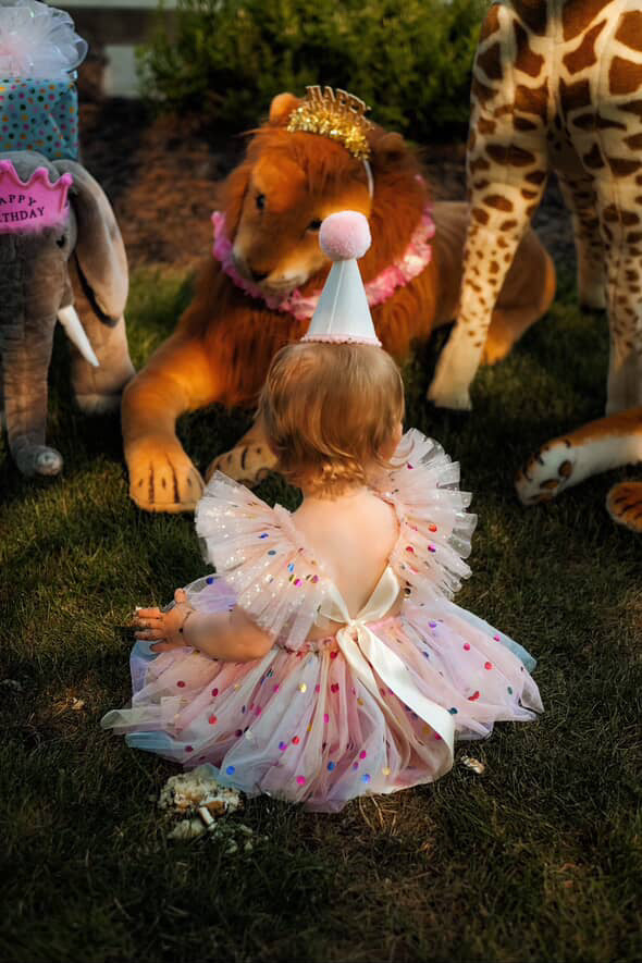 Whimsical 3D Detail: The hand-applied party hats and tutus on the animals create a stunning, high-end look that is a dream for professional milestone photography.