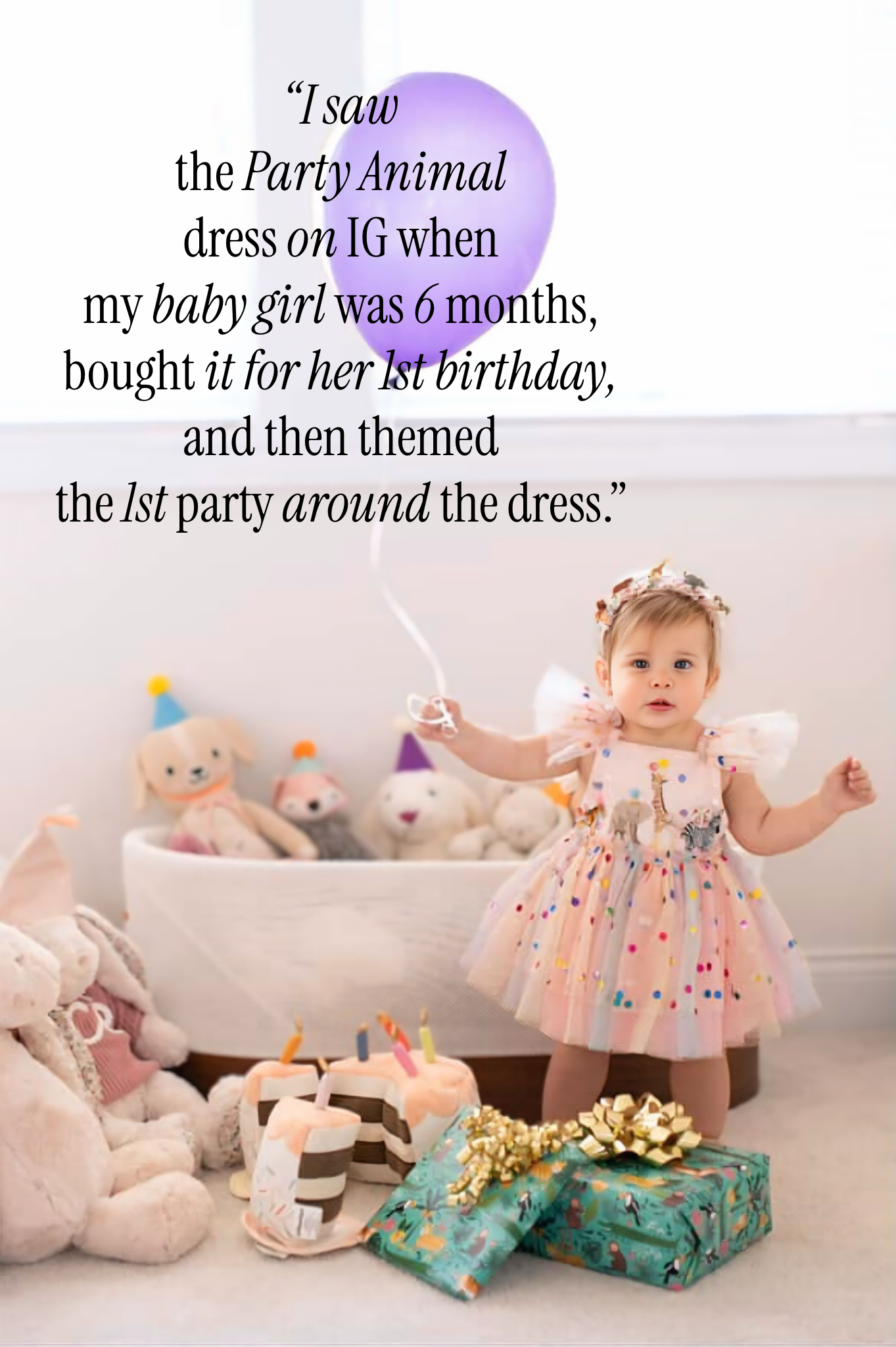 Our most popular choice for 1st birthdays is the 6–18 month size.