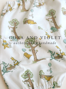 Dress your little one in timeless charm with our handmade timeless winnie the pooh cotton print -don’t forget your matching party hat! Crafted from soft, breathable cotton with delicate details, this heirloom-quality outfit is perfect for newborn photos, birthdays, cake smashes, or everyday play. Available in sizes newborn through 10 years, it’s a keepsake set designed for comfort, beauty, and memories that last.