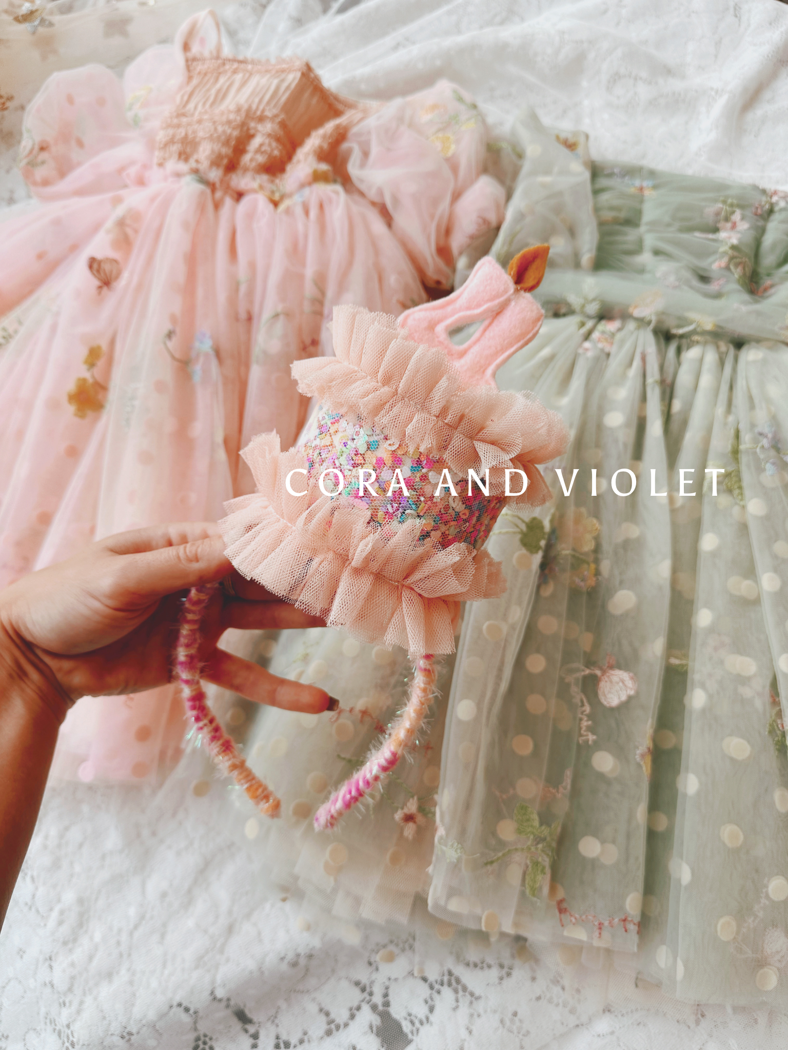 ***Please note that at Cora and Violet our creations are made from a mix of vintage and new materials- thus the exact fiber contents are not always known. The placement of the print, pattern, etc, varies from piece to piece as each item is cut from a different section of the fabric. Also note that vintage and reclaimed fabrics are not perfect- there may be slight signs of age- these are not areas of damage- rather part of the fabrics history. Hand wash only. Lie flat to dry. Please be careful with adornments and straps on all of the pieces as they could pose a chocking hazard. The clothing is not fire-resistant.
