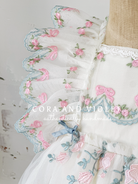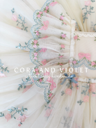 Why we Love her: layers of soft tulle under an embroidered bed of romantic florals and lace. My personal favorite touch is the scalloped embroidery & the eloquent drape of the sleeves- Fit for your princess. Functionally cute!