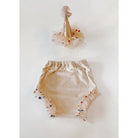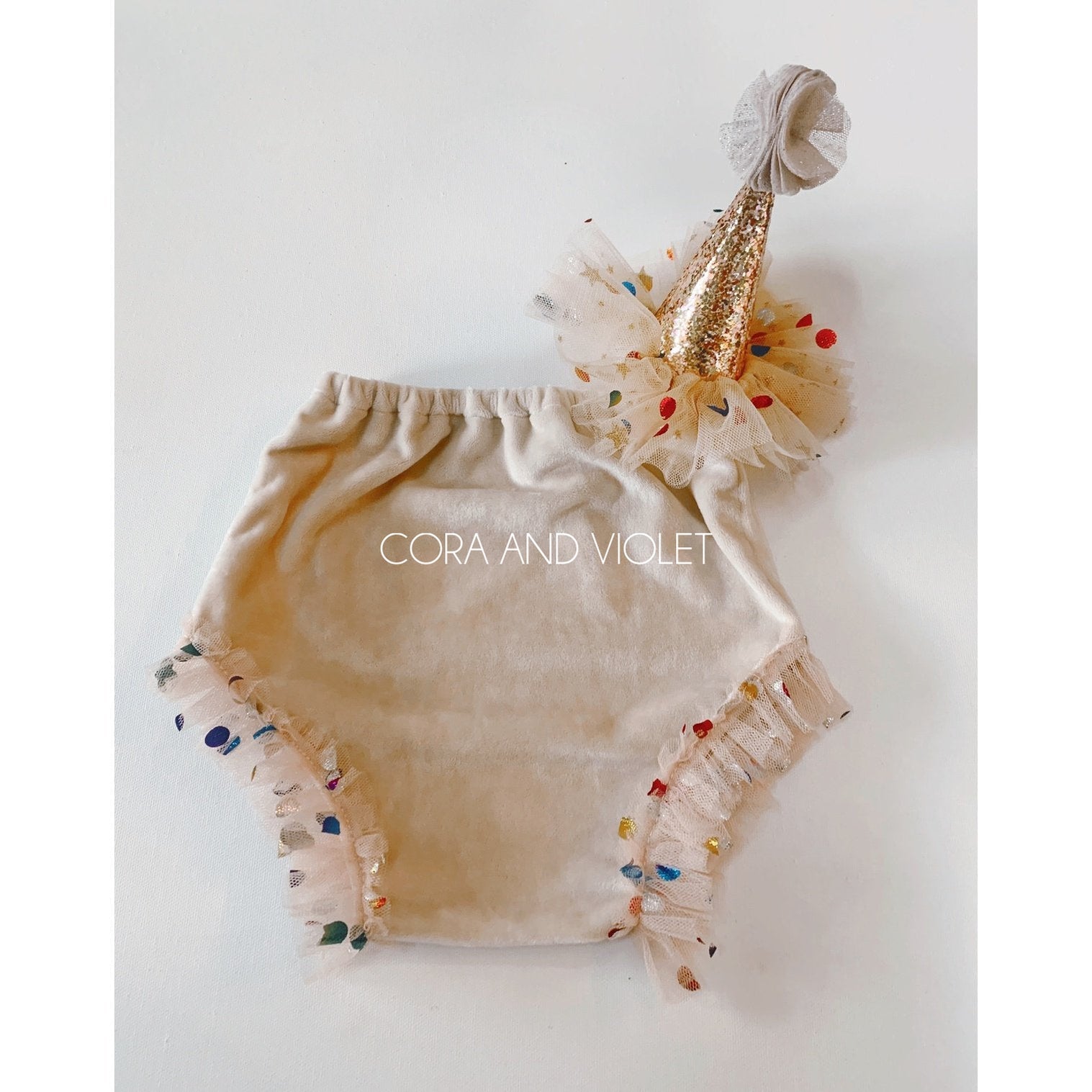 Made from a buttery soft stretch velvet with an elastic waist and tulle-trimmed leggies.