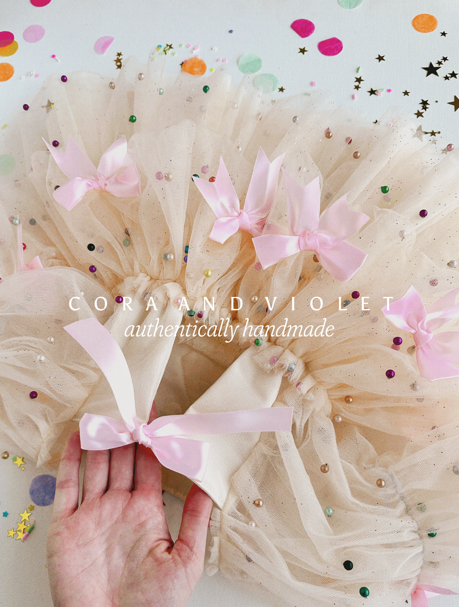 Handcrafted for Memories: Cora and Violet creations are artisan-made photography props and milestone garments designed for supervised use. Because each piece is a bespoke work of art—often incorporating vintage textiles, delicate laces, and hand-applied adornments—they are not intended for sleepwear or unsupervised play.