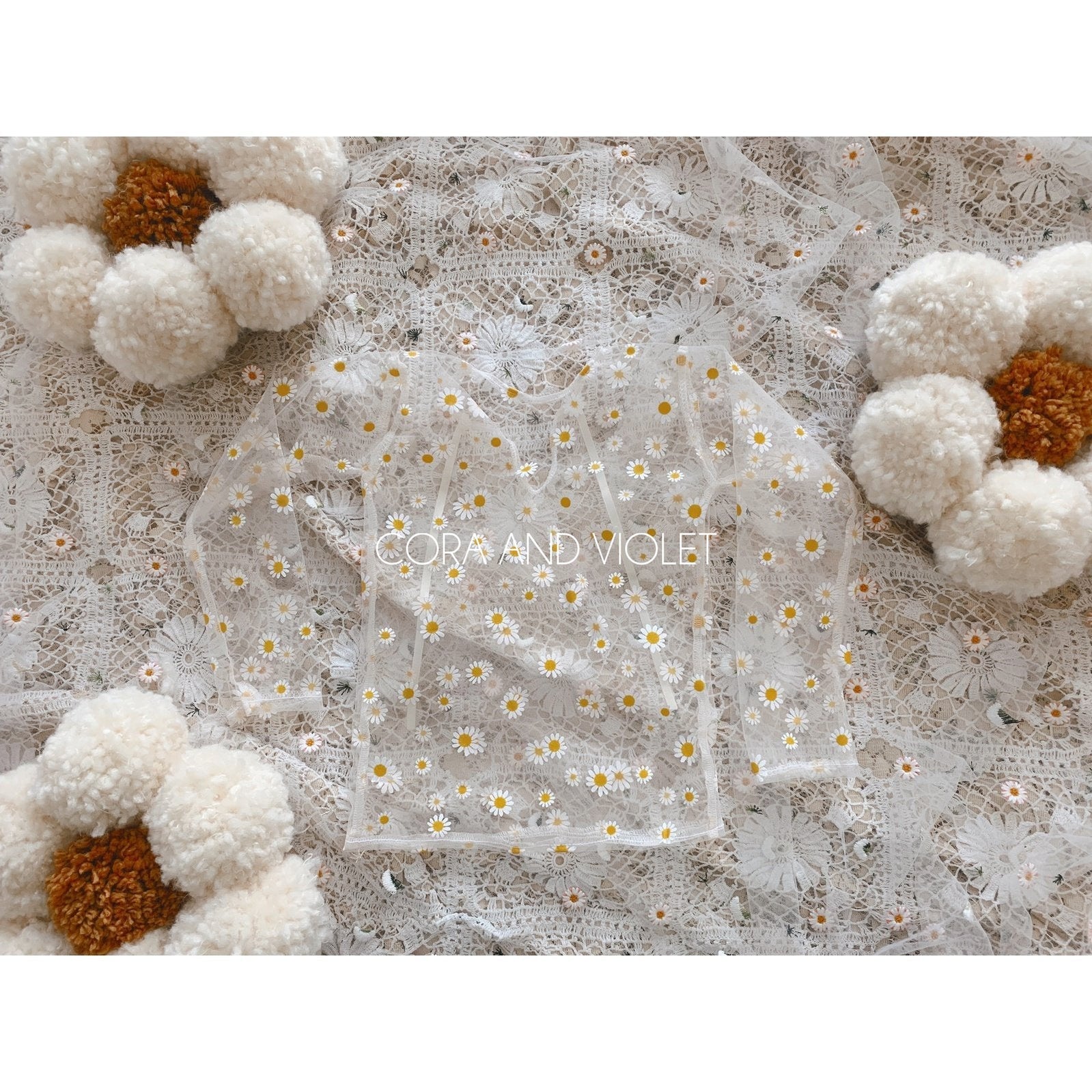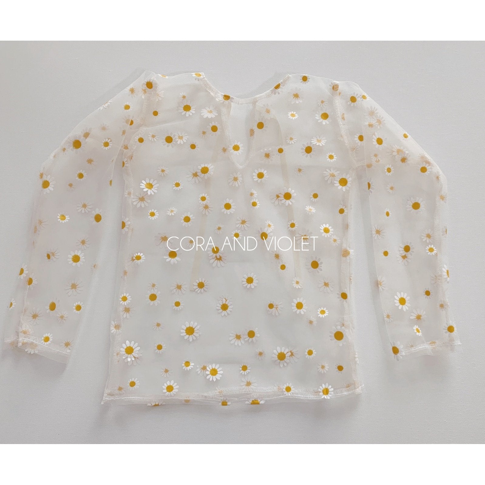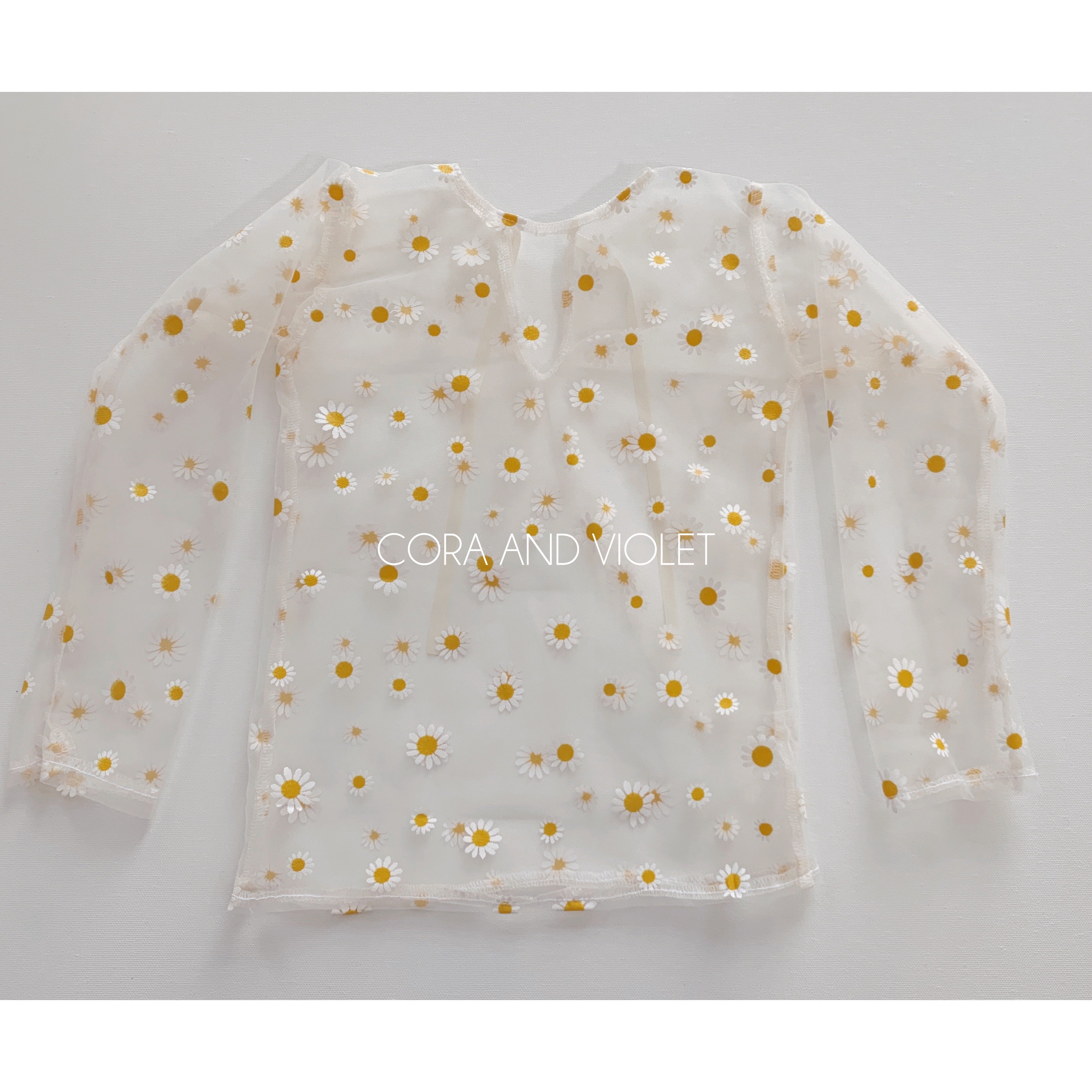 Sheer tulle layering top, flower power of soft creams and buttery yellows scattered across this tulle top.