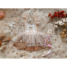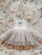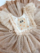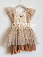 Enchanted bodice features a stunning array of creams, whites and embroidered glittery stars and soft flecked dots.of ghost our sweet ghost, adorned in individually hand placed flowers.