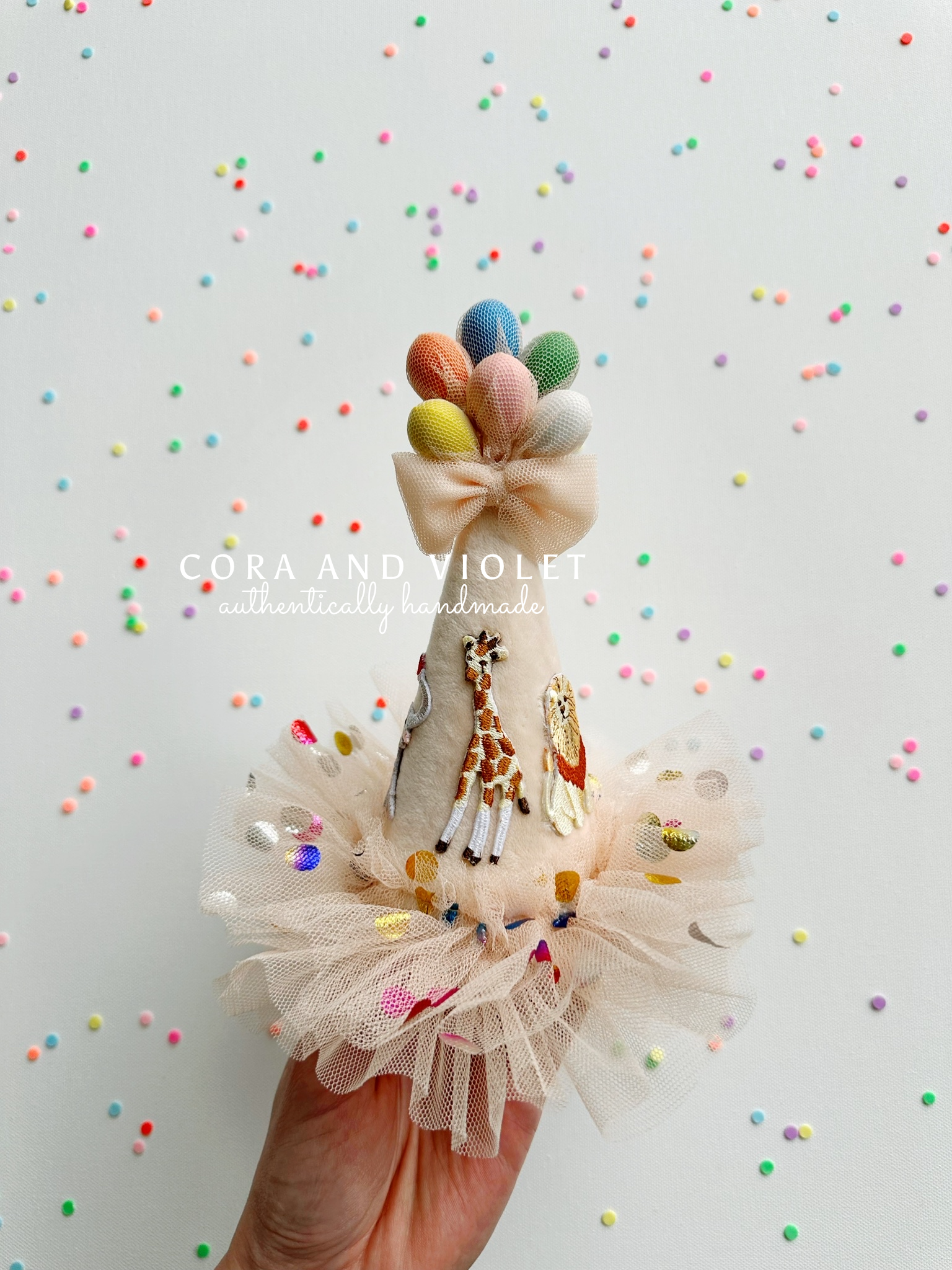 Stylish and comfortable, they are attached to a soft nylon elastic and meant to be worn around the back of the head, behind the ears, not as a typical party hat!