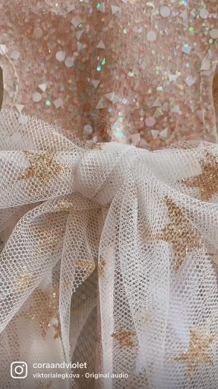 Wrapped in a coordinating tulle, textured glitter star base and a full bow.