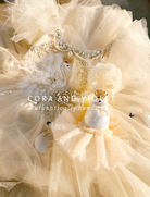 Handmade with soft ivory tulle, this heirloom party hat features embroidered swans, a dainty bow, and a golden crown—perfect for your little princess. Ideal for birthdays, milestone photos, or swan-themed celebrations.