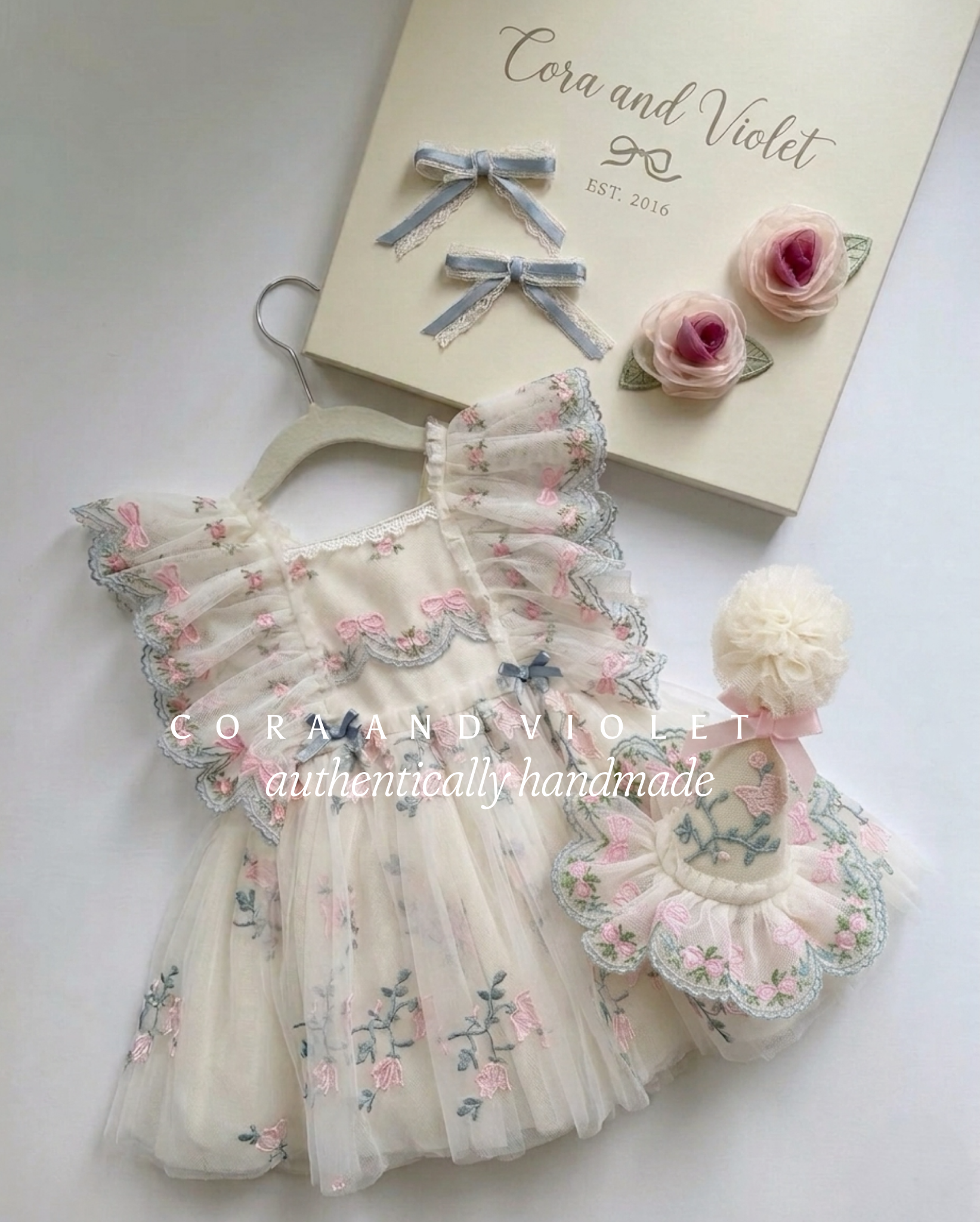 Our Fit Philosophy: Every Cora and Violet heirloom is tailored true to size for a polished look today, but featuring our signature 'Growth-Ease' silhouettes. With adjustable details and generous seam allowances, our dresses are designed to move with her as she grows, ensuring your favorite piece lasts through multiple seasons of magic.