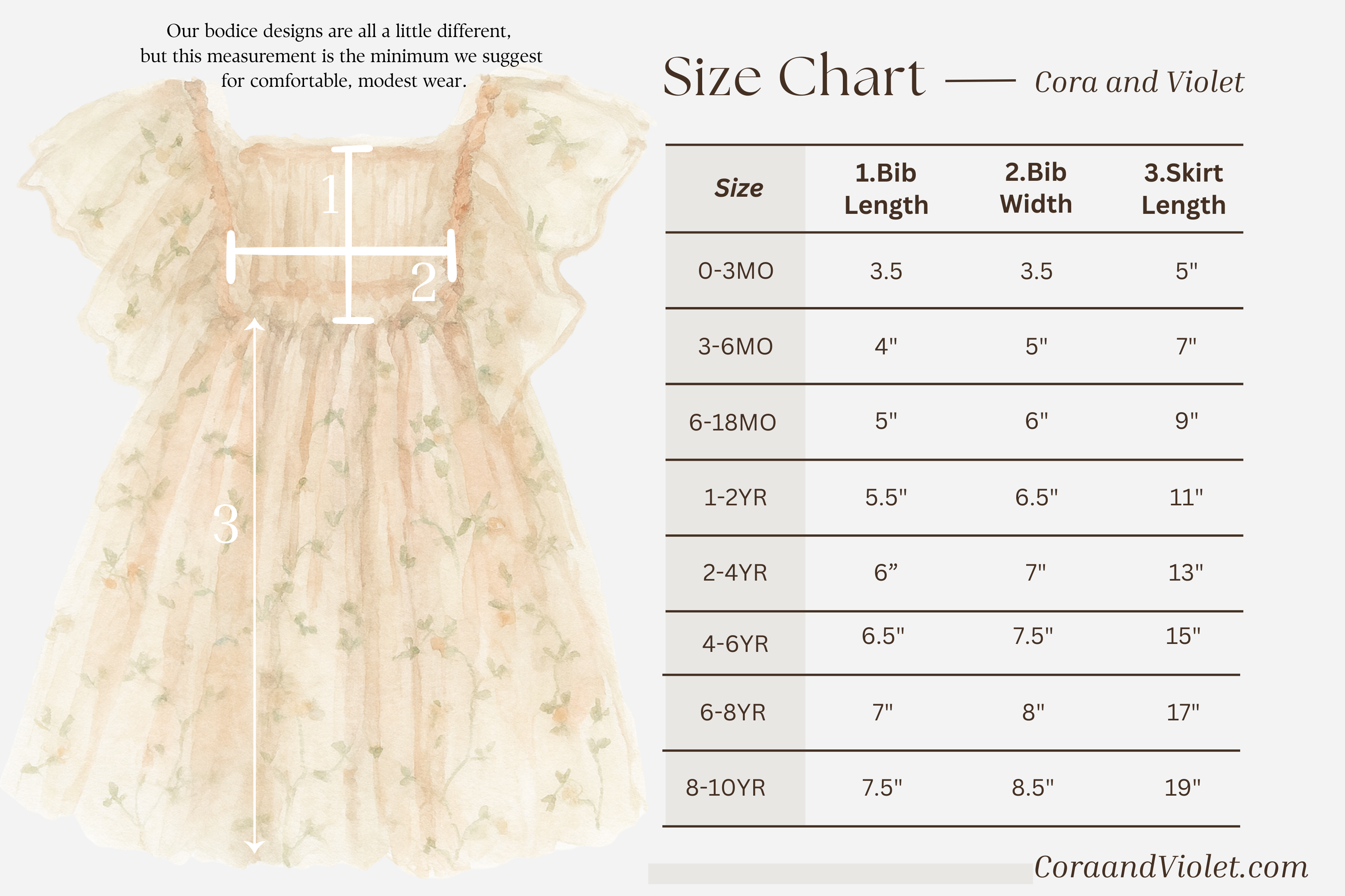 Measure right under your baby’s arms, around the fullest part of the chest. This helps match the bodice fit. This measurement ensures chest coverage. -