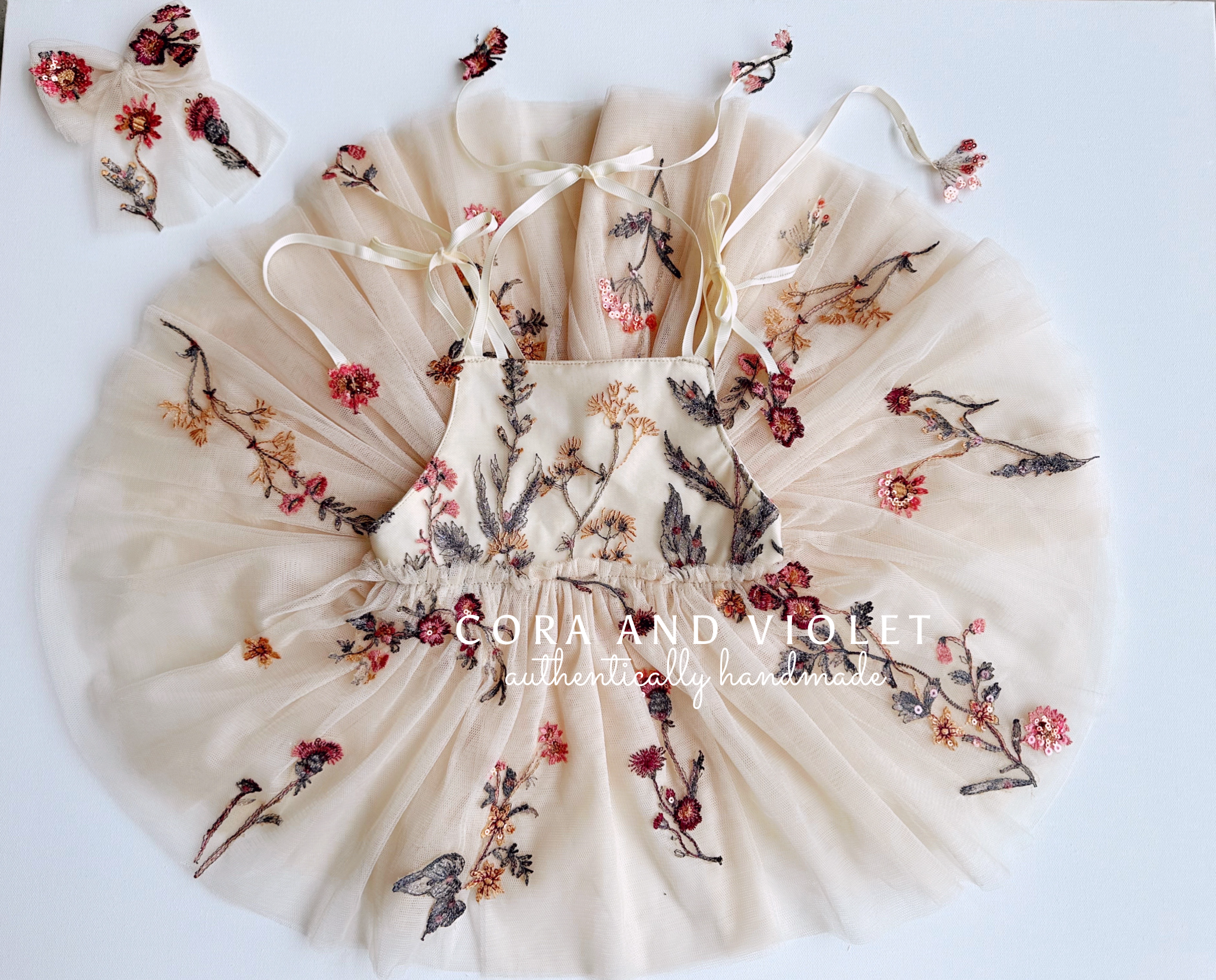Handcrafted for Memories: Cora and Violet creations are artisan-made photography props and milestone garments designed for supervised use. Because each piece is a bespoke work of art—often incorporating vintage textiles, delicate laces, and hand-applied adornments—they are not intended for sleepwear or unsupervised play.