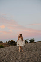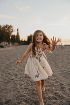 Versatile Elegance: The Aster is designed with a canopy of cascading silk-style straps that can be tied in a multitude of ways. Whether tied in a dramatic bow or crisscrossed for a custom look, the adjustable straps and elastic waist ensure a comfortable, "growth-ease" fit that moves with her.