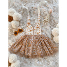 With a under layer of soft nude tulle this is the perfect dress for twirling, with three layers of a bunched and ruffled tulle.