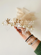 Why we Love her: Pearls, budding flowers soft eloquence. My personal favorite touch is the FIT, this crown style headband is the best of both worlds and is going to be your newest obsession!