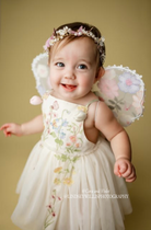 The Details: Dreams take flight with our signature artisan fairy wings. Adorned with a delicate array of embroidered flowers and dimensional 3D butterflies, these wings aren't just an accessory—they are an invitation to play.